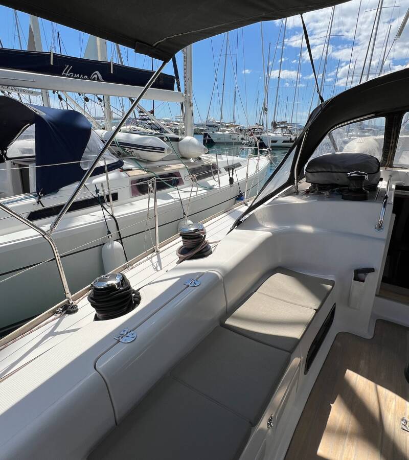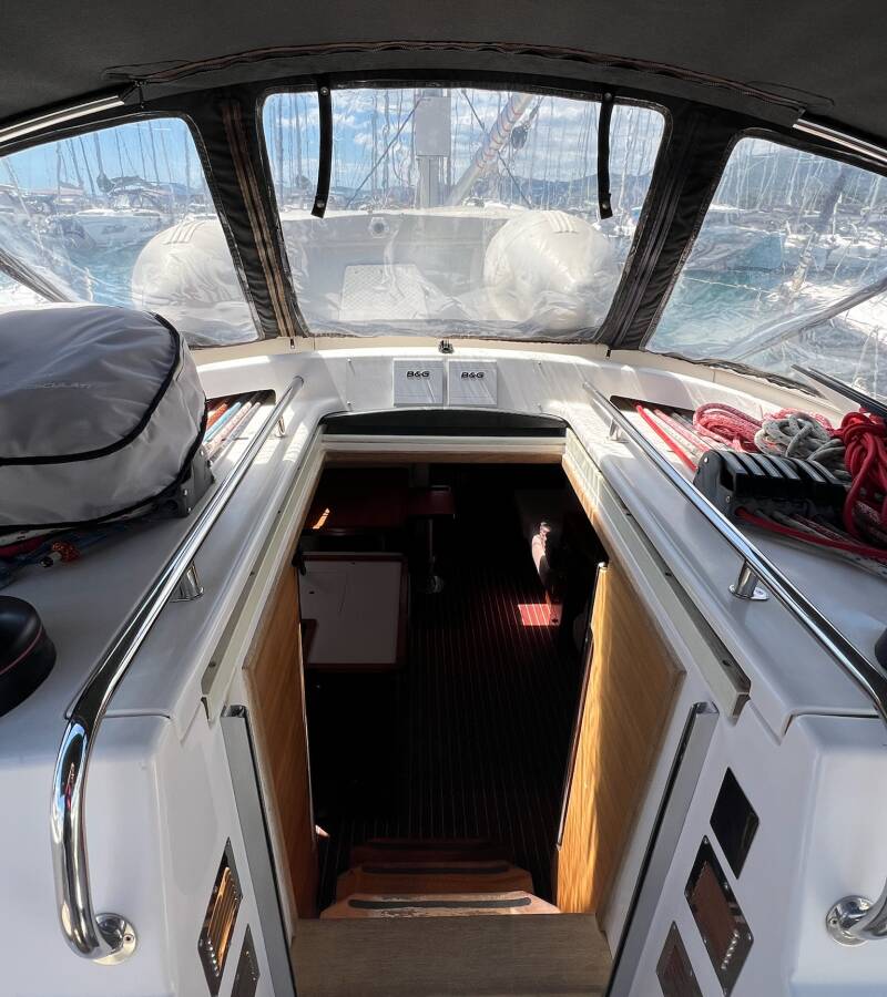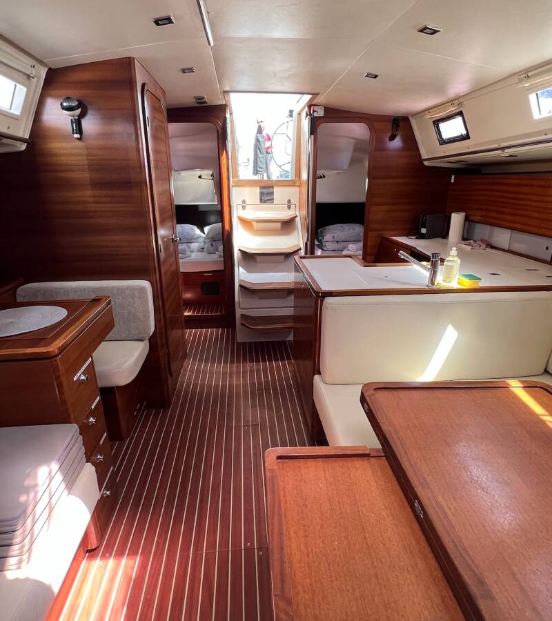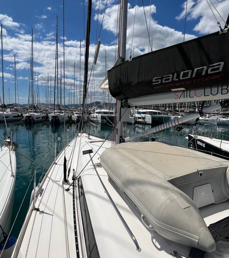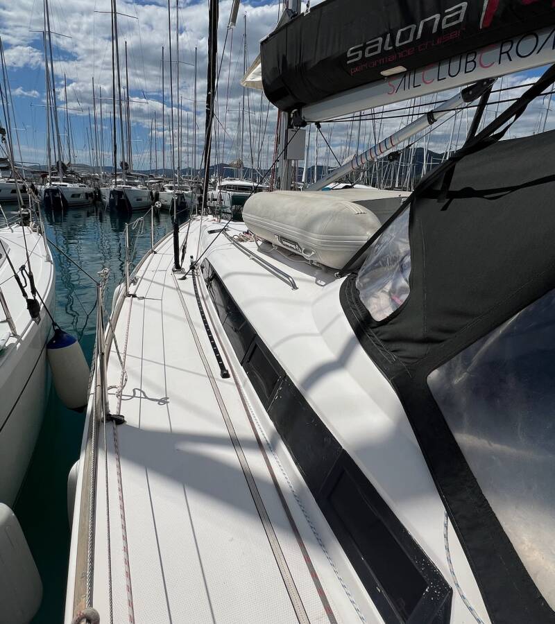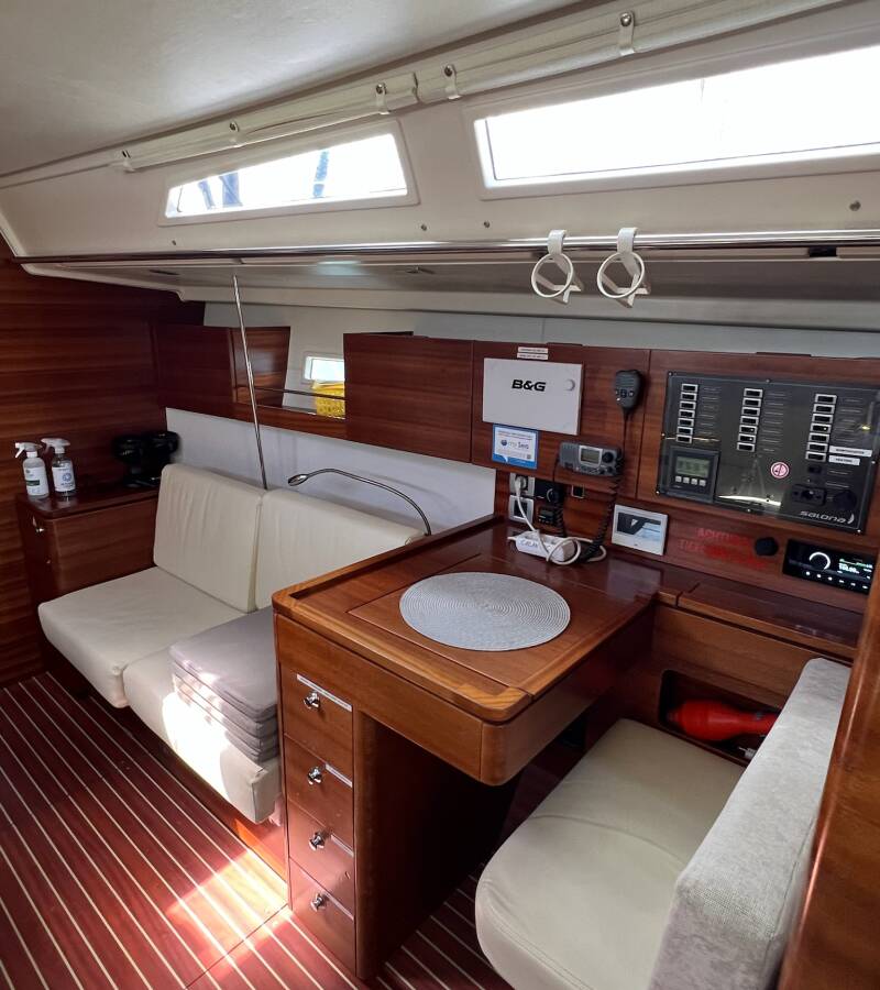 Die Salona 44 "Calanthe" ist ausgestattet mit einem Großsegel und einem Genoa sowie einer Radar, Bimini Top, Autopilot, Sprayhood, Heizung, Teak im Cockpit, GPS Kartenplotter - Cockpit.