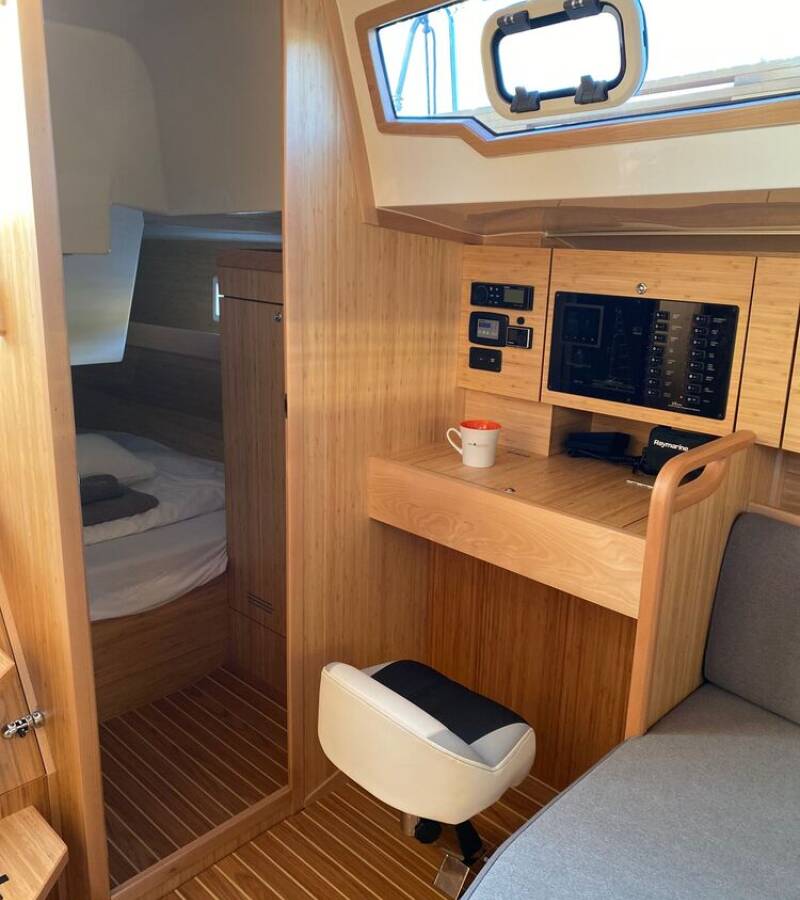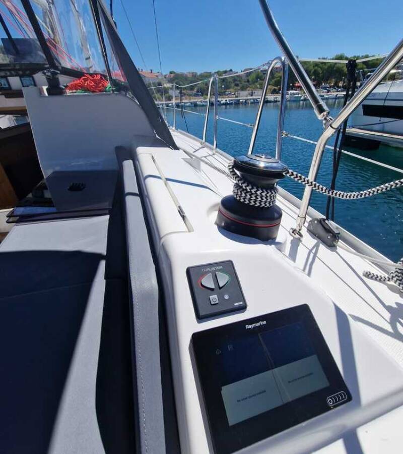 Die Scandinavia 35 "Furia" ist ausgestattet mit einem Großsegel und einem Genoa sowie einer Bimini Top, Autopilot, Sprayhood, Heizung, Teak im Cockpit, GPS Kartenplotter - Cockpit.
