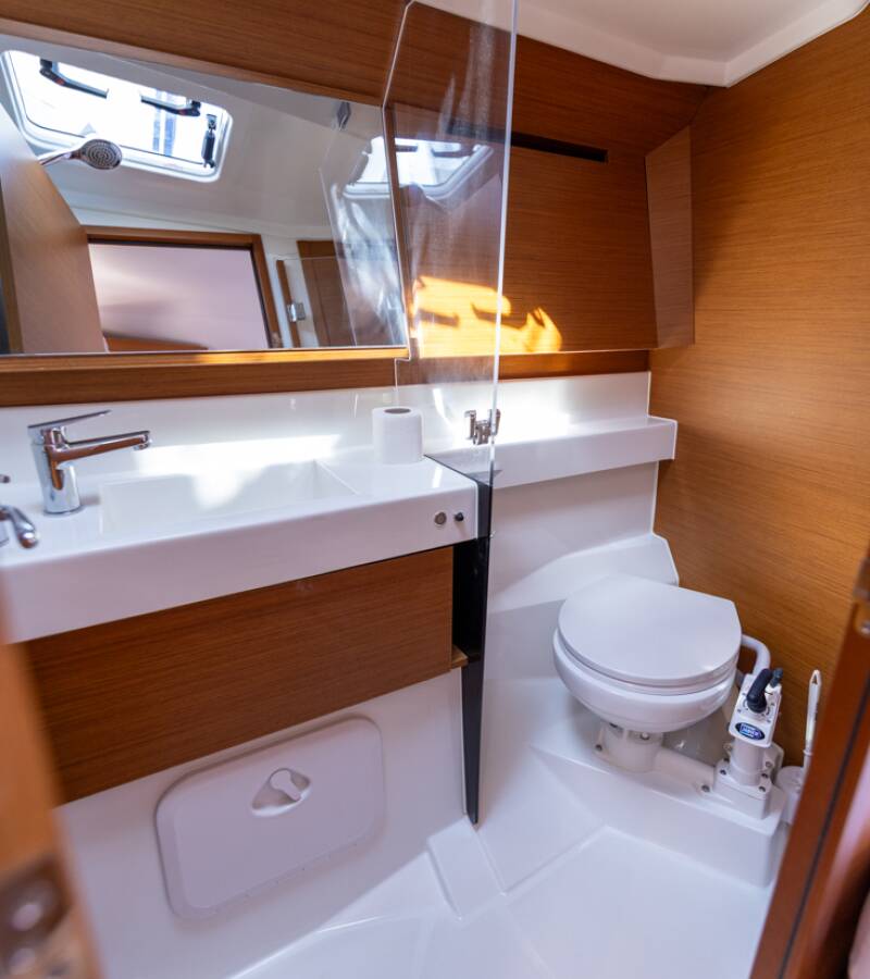 Die Sun Odyssey 410 "Lumina" bietet besonderen Komfort mit folgenden Ausstattungsmerkmalen: Bugstrahlruder, Klimaanlage, Tiefkühlfach, Cockpit Kissen, Badeplattform, Inverter, Solar Panel.