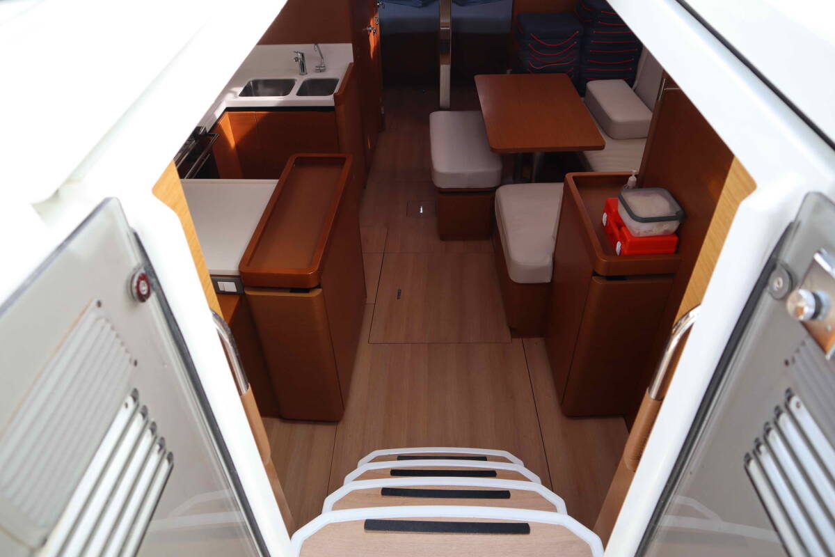 Die Sun Odyssey 440 "Diamond" bietet besonderen Komfort mit folgenden Ausstattungsmerkmalen: Bugstrahlruder, Cockpit Kissen, Elektrische Toilette, Solar Panel.