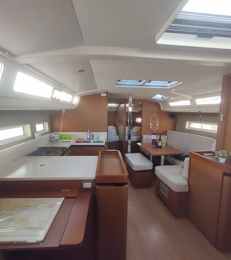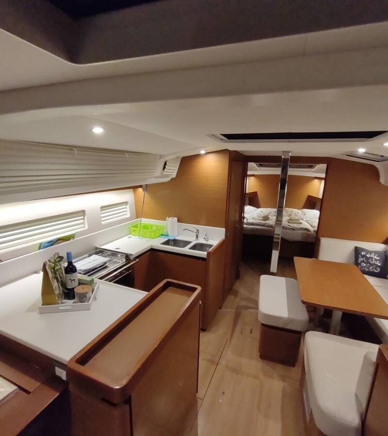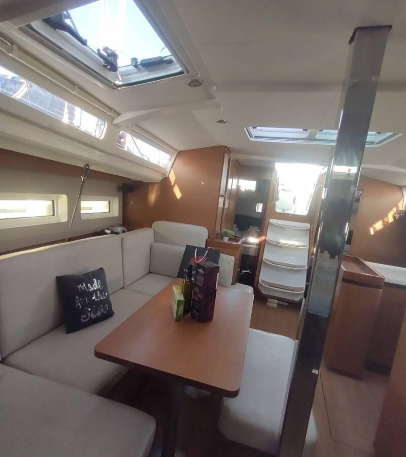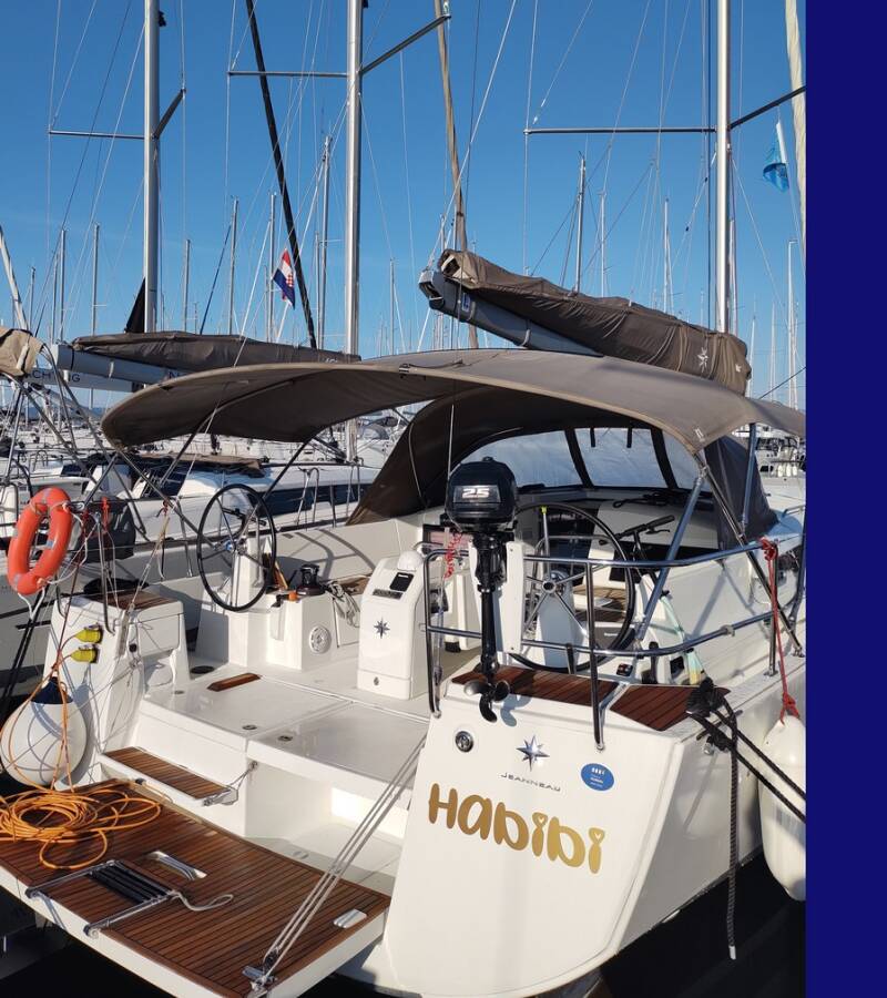 Die Sun Odyssey 440 "Habibi" bietet besonderen Komfort mit folgenden Ausstattungsmerkmalen: Bugstrahlruder, Klimaanlage, Tiefkühlfach, Cockpit Kissen, Badeplattform, Inverter.
