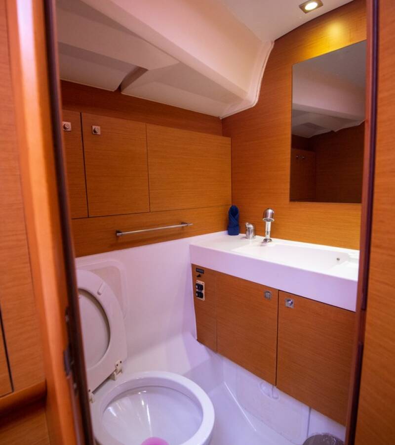 Die Sun Odyssey 469 "Aurora Belle" bietet besonderen Komfort mit folgenden Ausstattungsmerkmalen: Bugstrahlruder, Tiefkühlfach, Inverter.