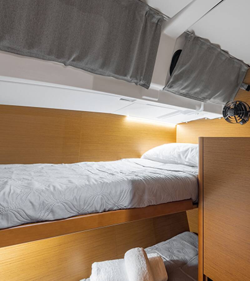 Die Sun Odyssey 490 "Notus" bietet besonderen Komfort mit folgenden Ausstattungsmerkmalen: Bugstrahlruder, Generator, Klimaanlage, Tiefkühlfach, Cockpit Kissen, Badeplattform, Elektrische Toilette, Solar Panel.
