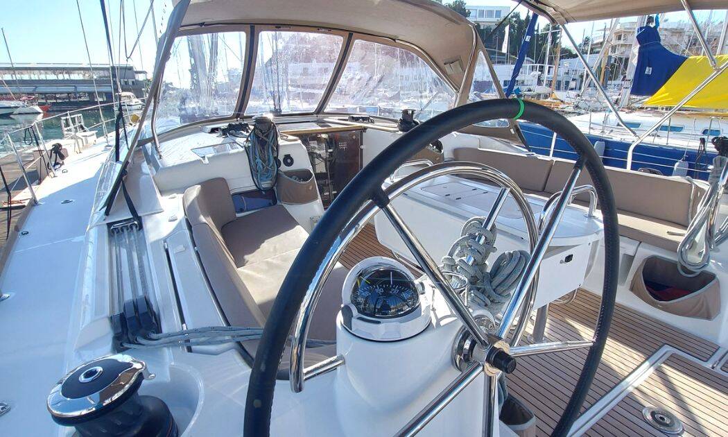Die Sun Odyssey 519 "Fiesta" ist ausgestattet mit einem Großsegel und einem Genoa sowie einer Bimini Top, Autopilot, Sprayhood.