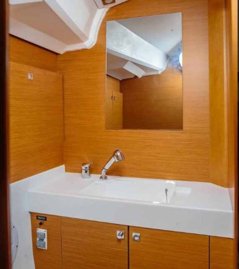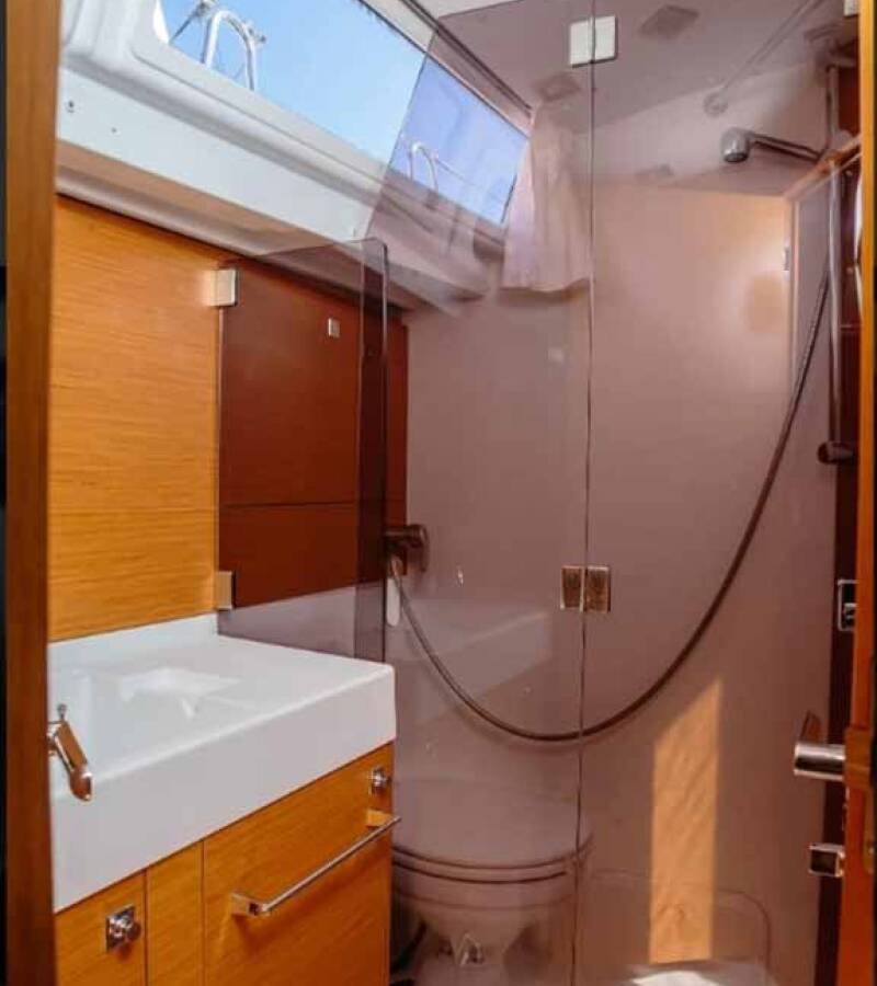 Die Sun Odyssey 519 "Kalos" bietet besonderen Komfort mit folgenden Ausstattungsmerkmalen: Bugstrahlruder, Cockpit Kissen, Inverter, Elektrische Toilette.