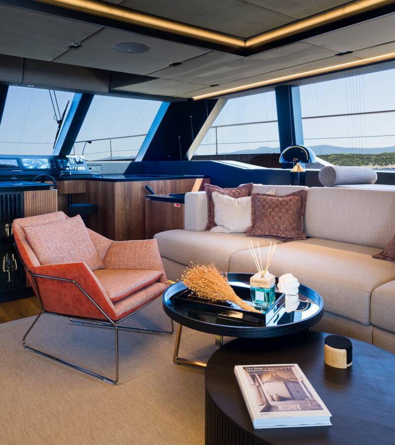 Die Sunreef 70 Power "Amber One" ist ausgestattet mit einer Autopilot, Sprayhood.