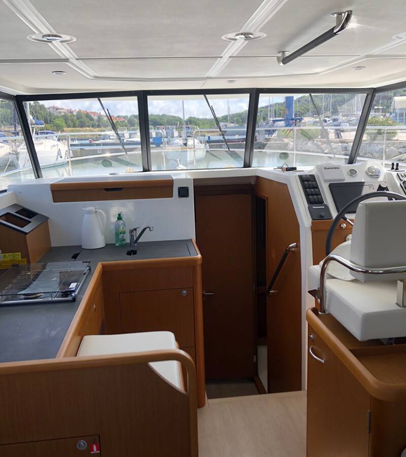 Die Swift Trawler 35 "Max" ist ausgestattet mit einer Bimini Top, Autopilot, Heizung, GPS Kartenplotter - Cockpit.