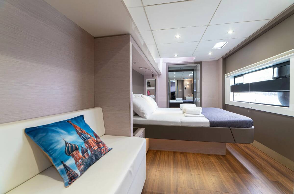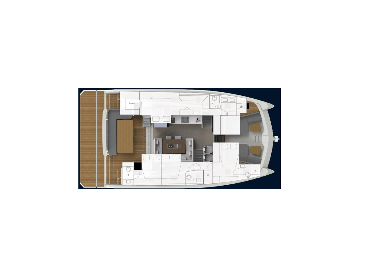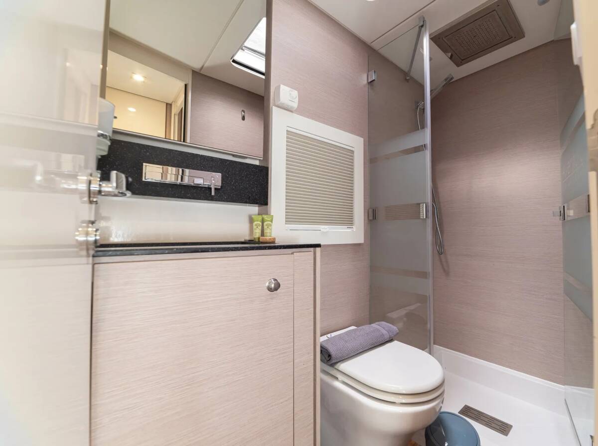 The Aventura 50 „Kamchatka“ offers special comfort with the following equipment features: Bow thruster, Generator, Air Conditioning, Freezer, Washing machine, Bathing platform, Inverter, Dishwasher.