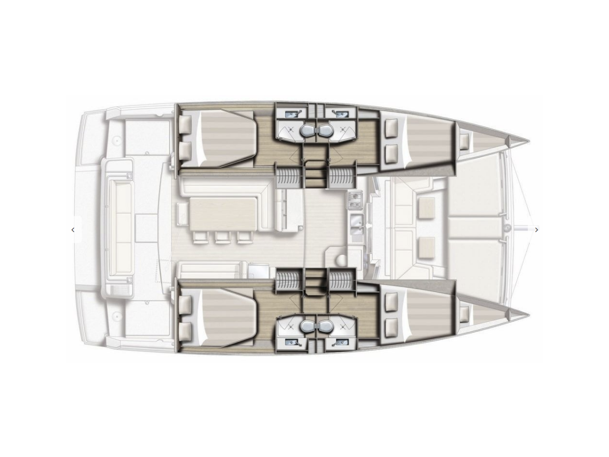 The Bali 4.1 „Lady Dasi“ offers special comfort with the following equipment features: Generator, Air Conditioning, Cockpit cushions, Inverter, Electric toilet, Solar panels.