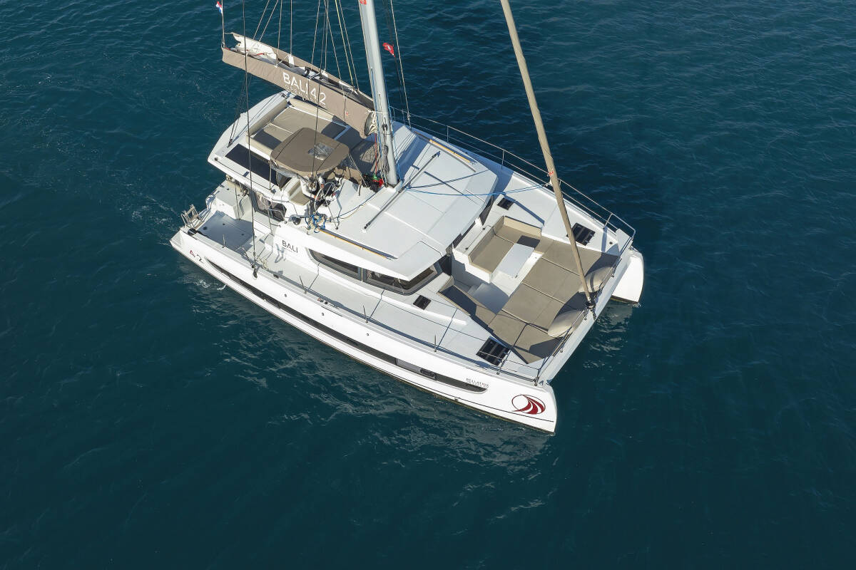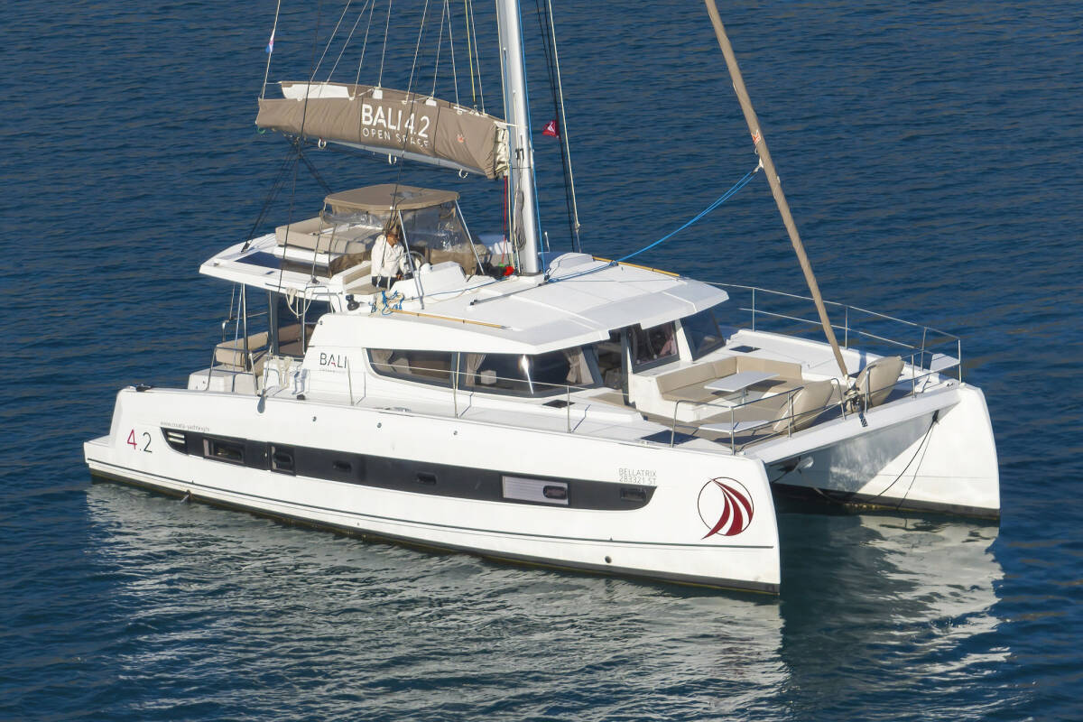 The Bali 4.2 „Bellatrix“ offers special comfort with the following equipment features: Generator, Air Conditioning, Freezer, Cockpit cushions, Bathing platform, Inverter, Electric toilet, Solar panels.