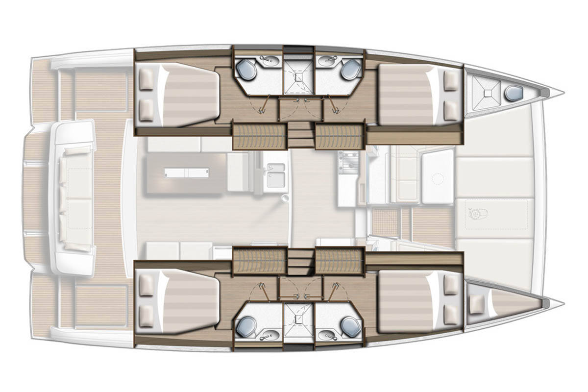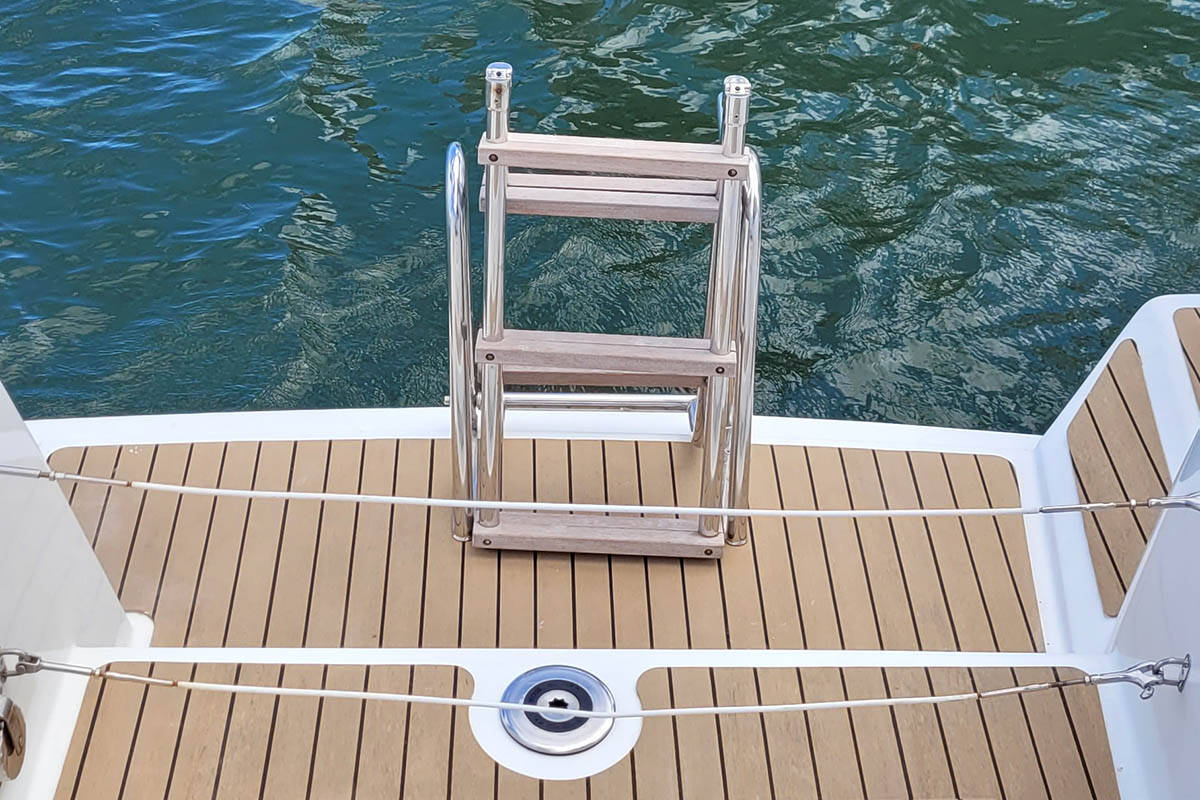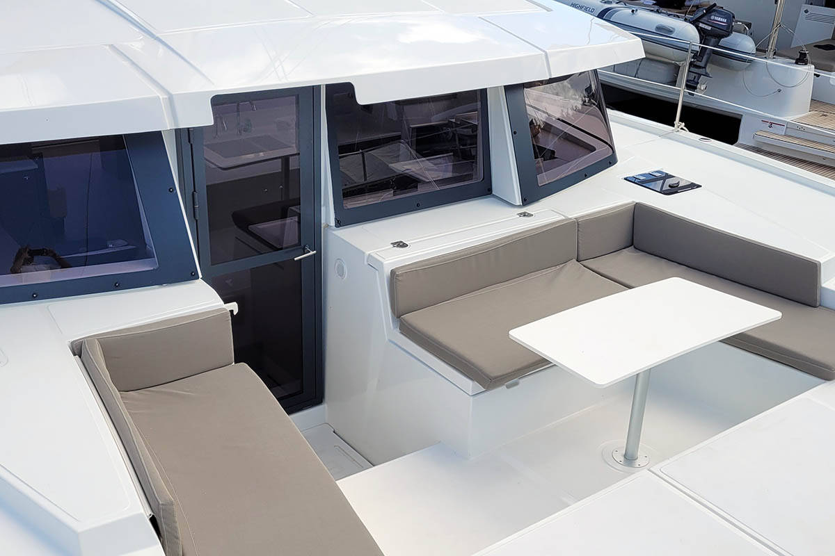 The Bali 4.2 „Le 113_X“ is equipped with a mainsail and a genoa as well as a Bimini top, Autopilot, Teak cockpit.