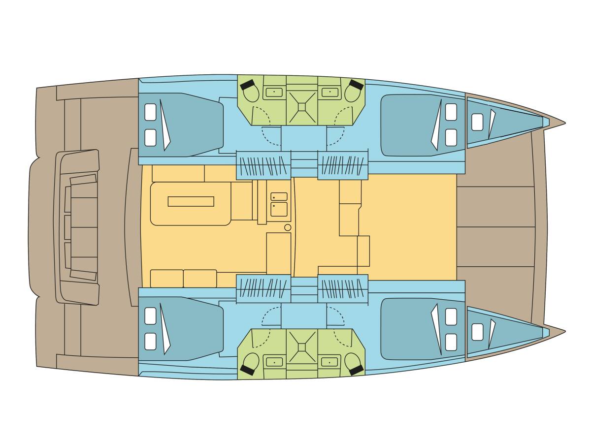 The Bali 4.2 „WRECKLESS I“ offers special comfort with the following equipment features: Generator, Air Conditioning, Freezer, Inverter, Electric toilet, Solar panels.