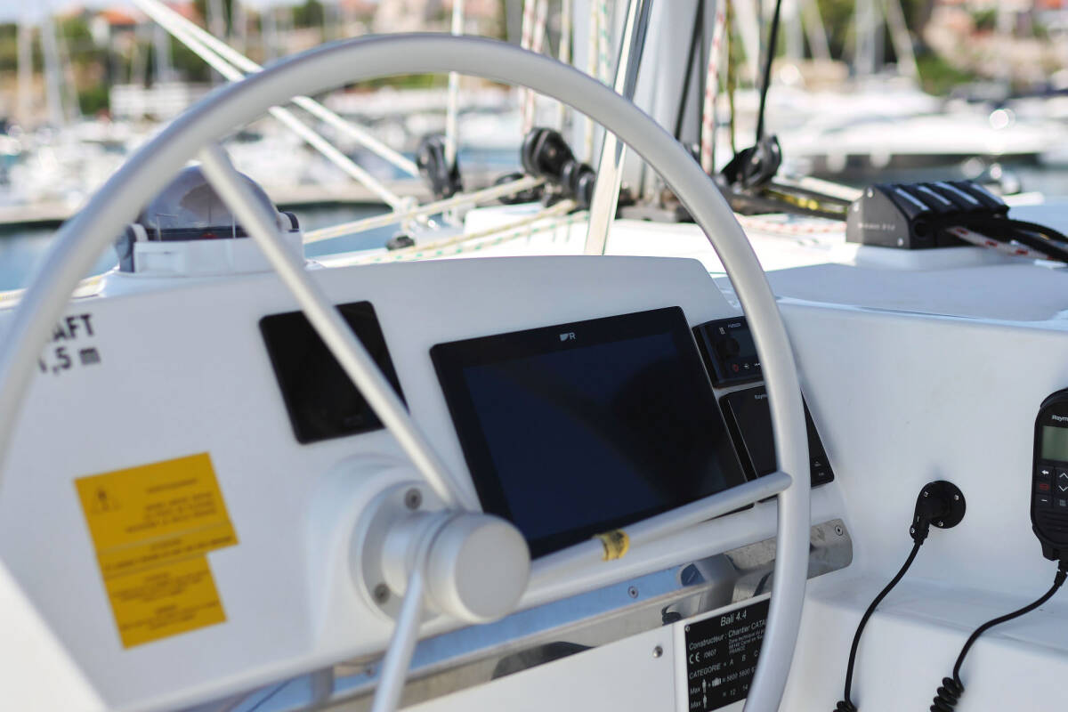 The Bali 4.4 „Algol“ is equipped with a mainsail and a genoa as well as a Autopilot, Heating, GPS chart plotter - cockpit.