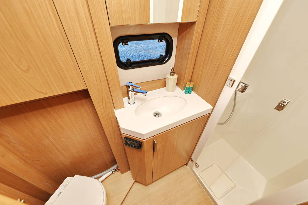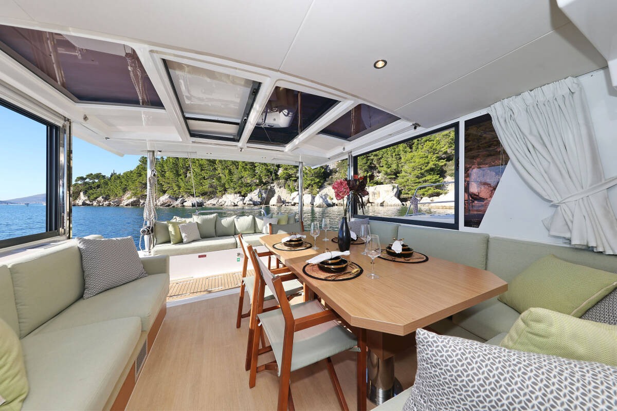 The Bali 4.6 „Belle Amie“ offers special comfort with the following equipment features: Generator, Air Conditioning, Freezer, Cockpit cushions, Bathing platform, Inverter, Electric toilet, Dishwasher, Solar panels.