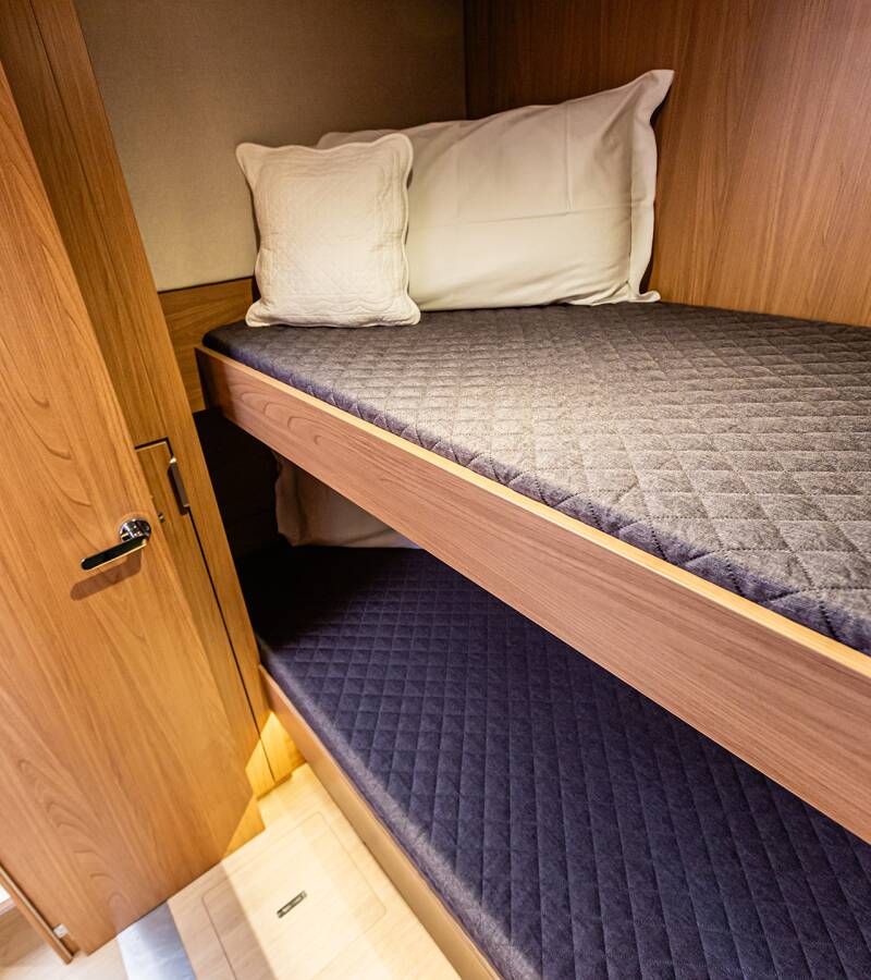 The Bali 4.6 „Enea“ offers special comfort with the following equipment features: Generator, Air Conditioning, Freezer, Cockpit cushions, Inverter, Electric toilet, Cockpit grill.