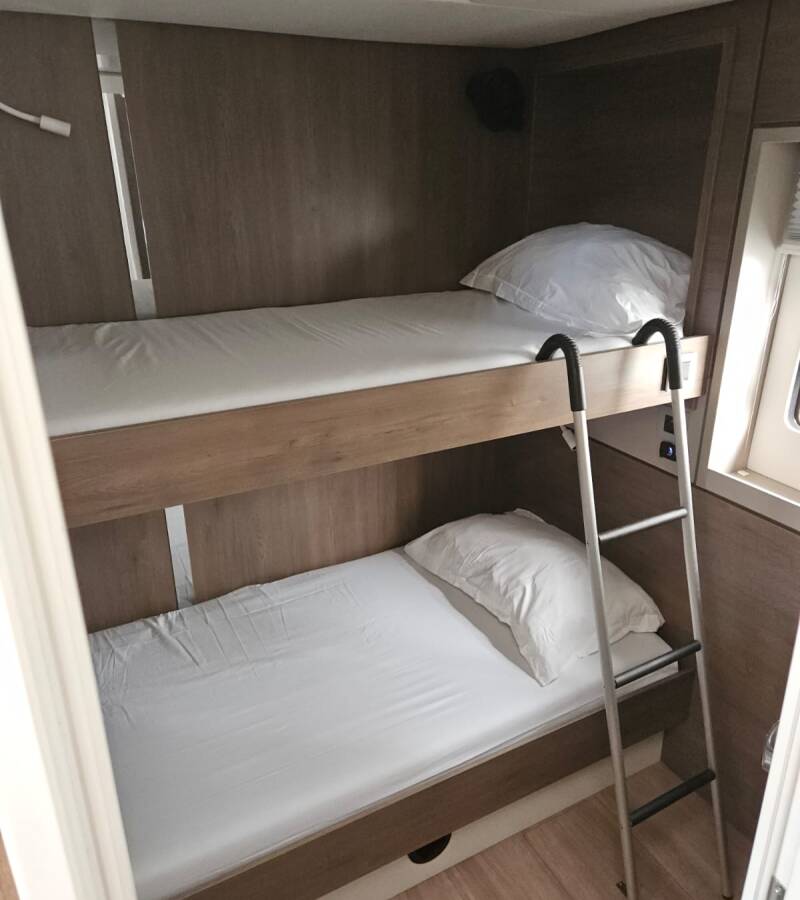 The Bali 4.8 „ELVIRA“ offers special comfort with the following equipment features: Bow thruster, Generator, Air Conditioning, Freezer, Cockpit cushions, Washing machine, Bathing platform, Inverter, Electric toilet, Dishwasher, Solar panels.