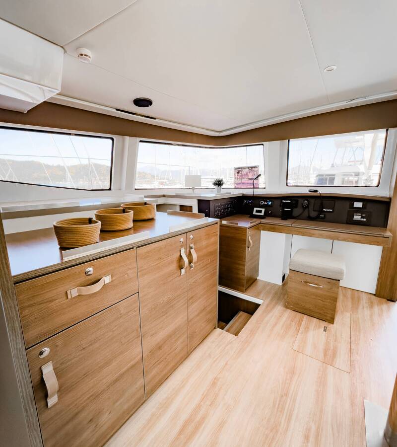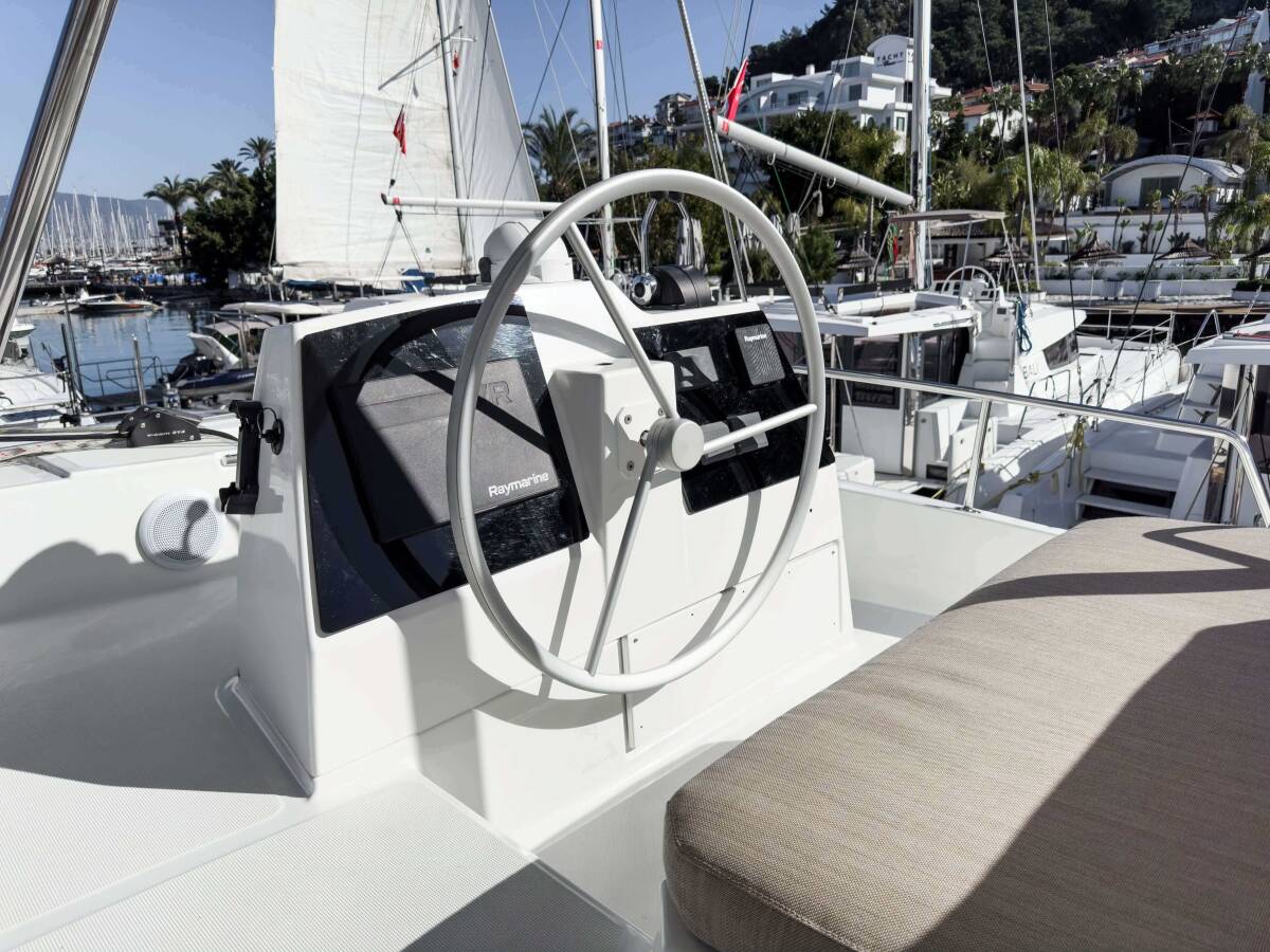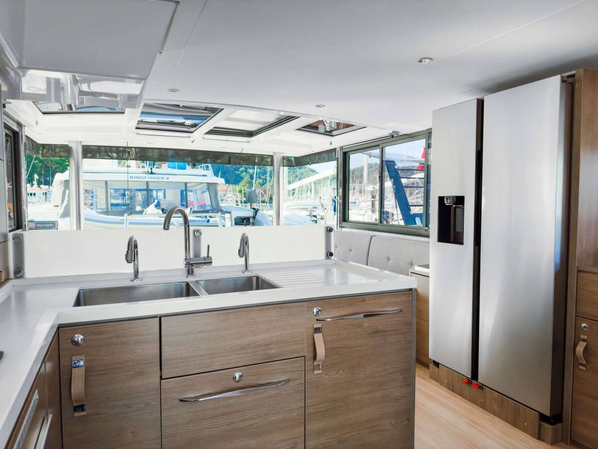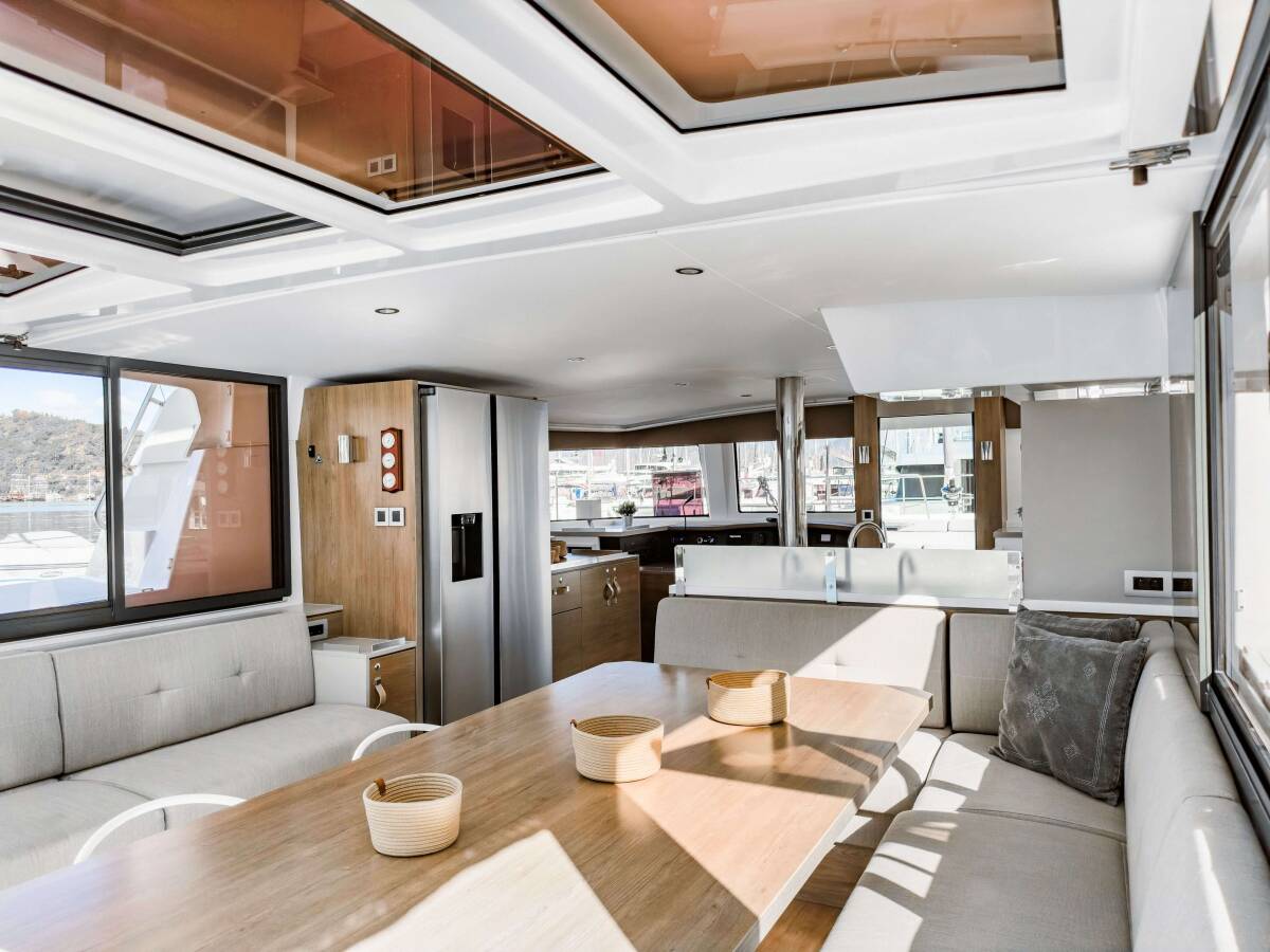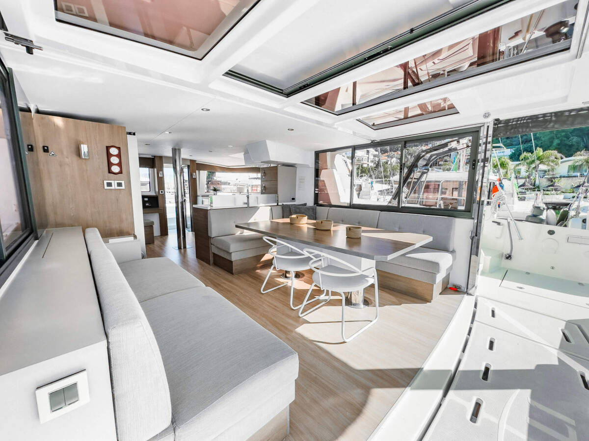 The Bali 4.8 „Pagora“ offers special comfort with the following equipment features: Generator, Air Conditioning, Freezer, Cockpit cushions, Inverter, Dishwasher, Solar panels.