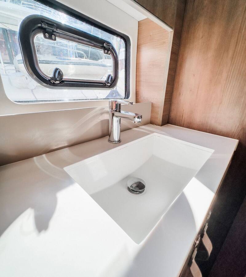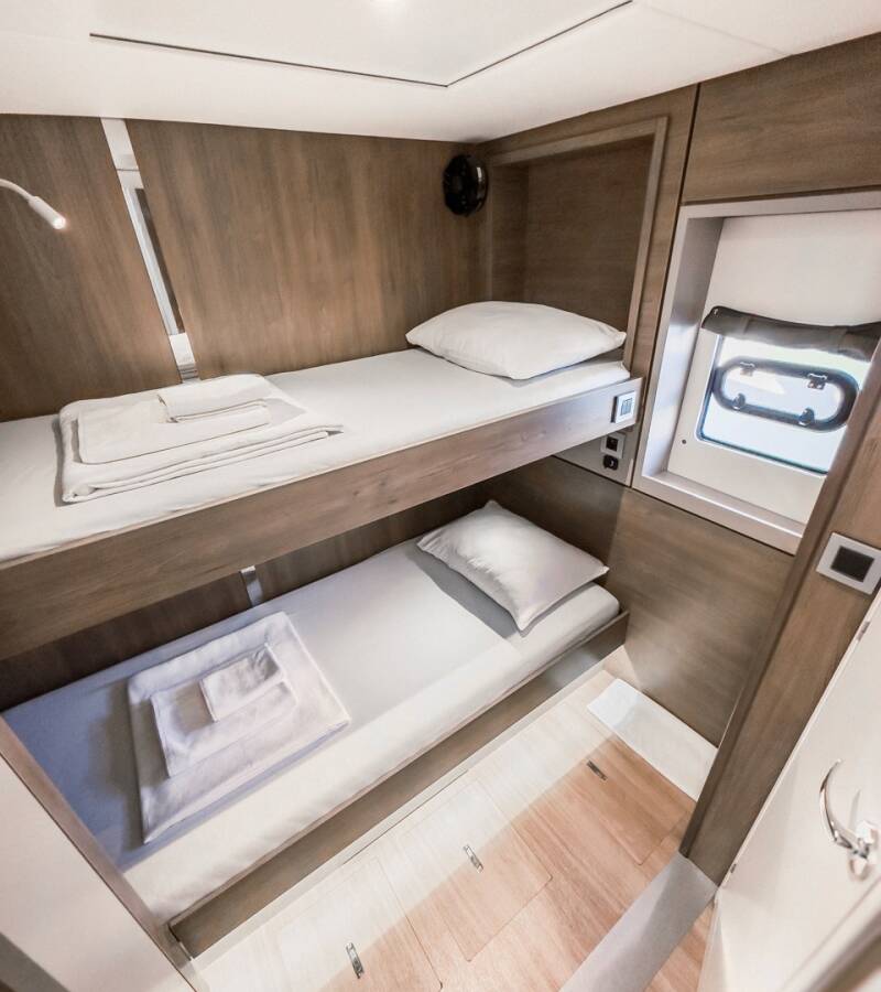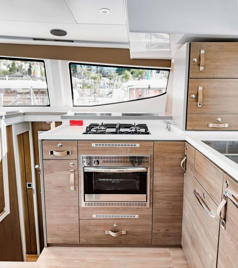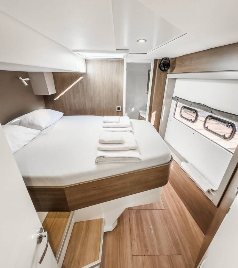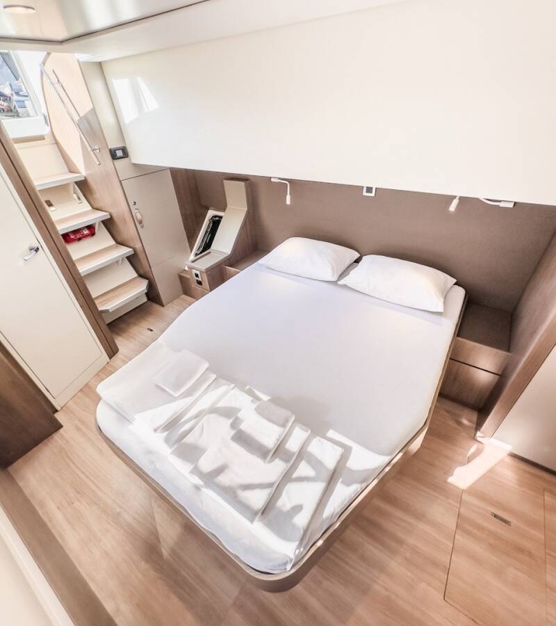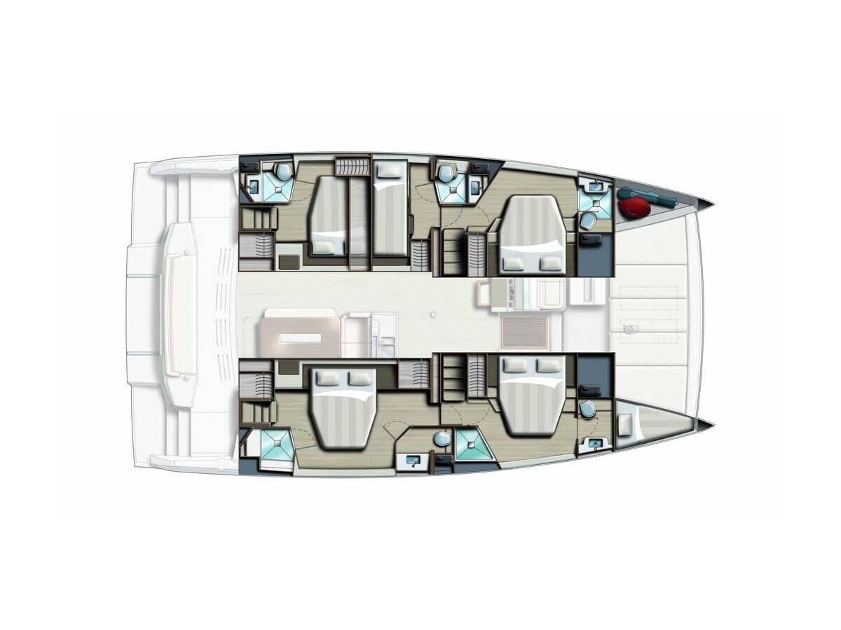 The Bali 4.8 „Pagora“ offers special comfort with the following equipment features: Generator, Air Conditioning, Freezer, Cockpit cushions, Inverter, Dishwasher, Solar panels.