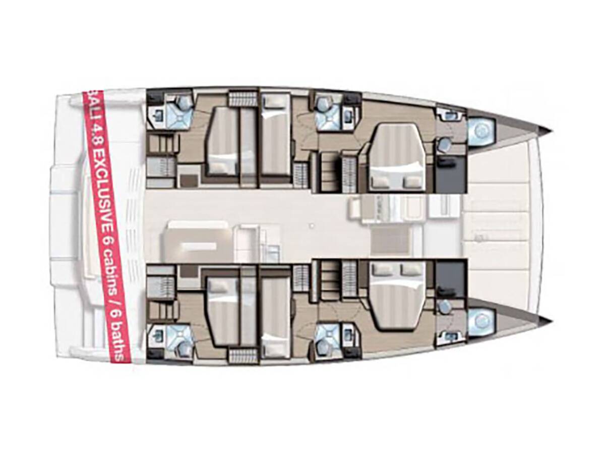 The Bali 4.8 „Sea Pearl“ offers special comfort with the following equipment features: Generator, Air Conditioning, Cockpit cushions, Electric toilet.