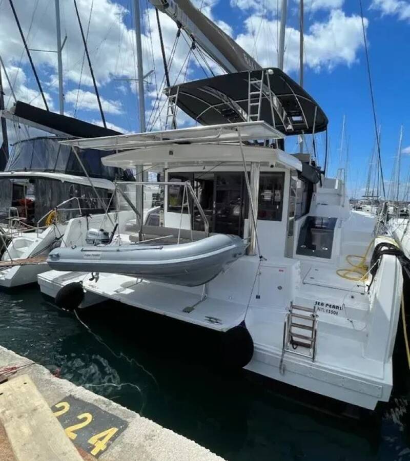 The Bali 4.8 „Sea Pearl“ is equipped with a mainsail and a genoa as well as a Bimini top, Autopilot, Sprayhood.