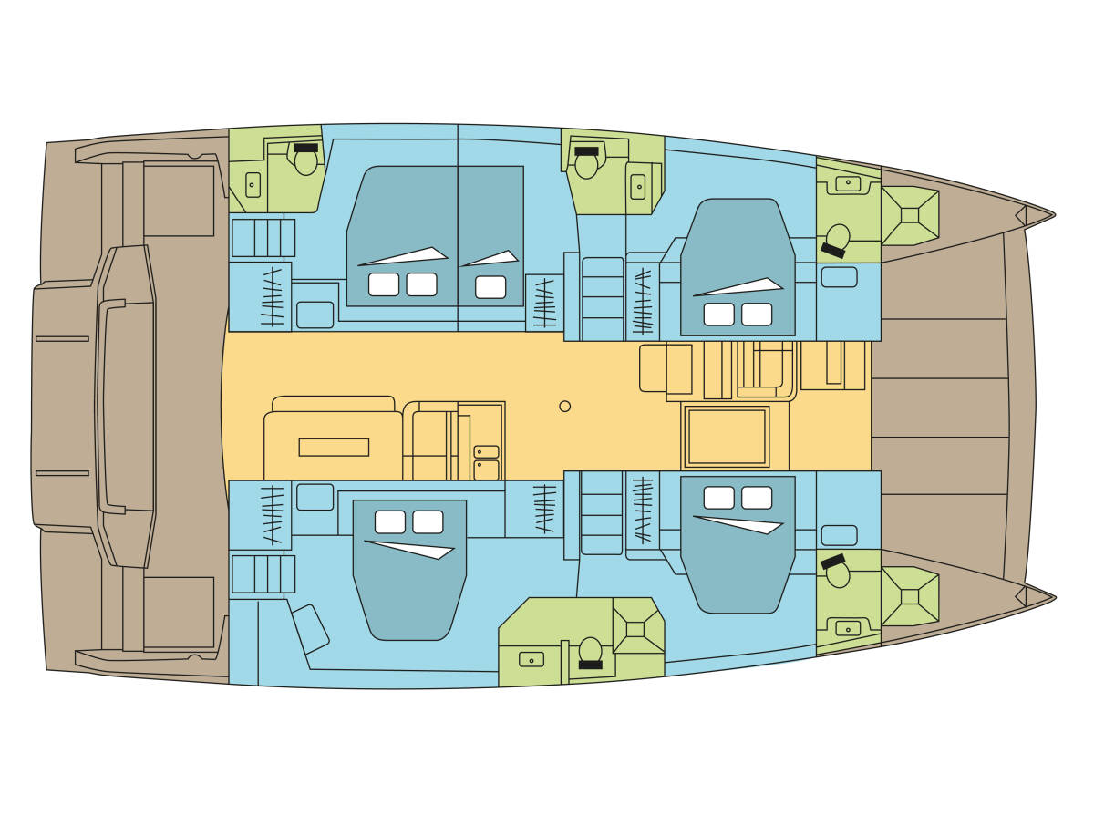 The Bali 4.8 „Yepa“ offers special comfort with the following equipment features: Generator, Air Conditioning, Freezer, Bathing platform, Inverter, Solar panels.