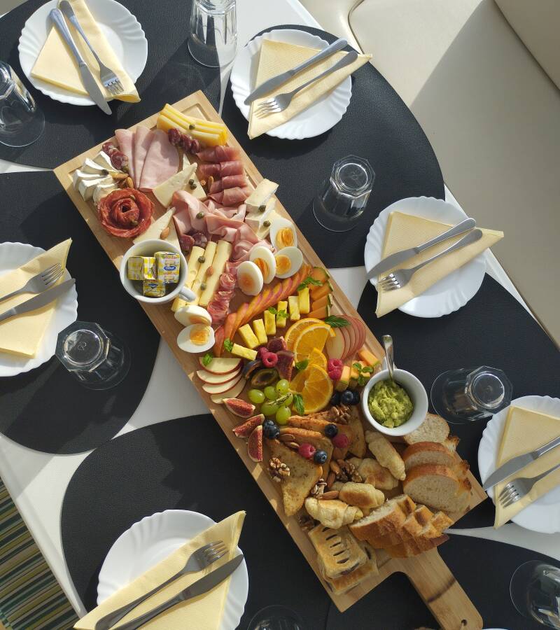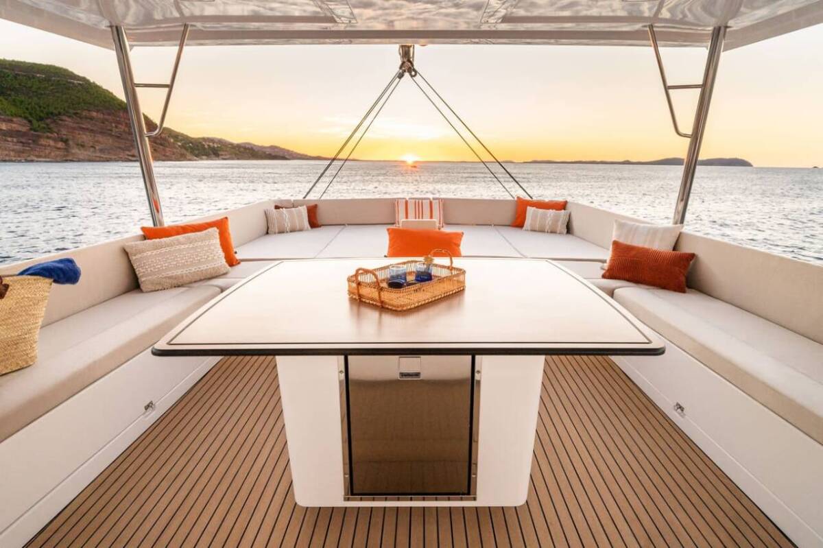 The Bali 5.8 „Bali Kai“ offers special comfort with the following equipment features: Bow thruster, Generator, Air Conditioning, Freezer, Inverter, Electric toilet, Dishwasher.