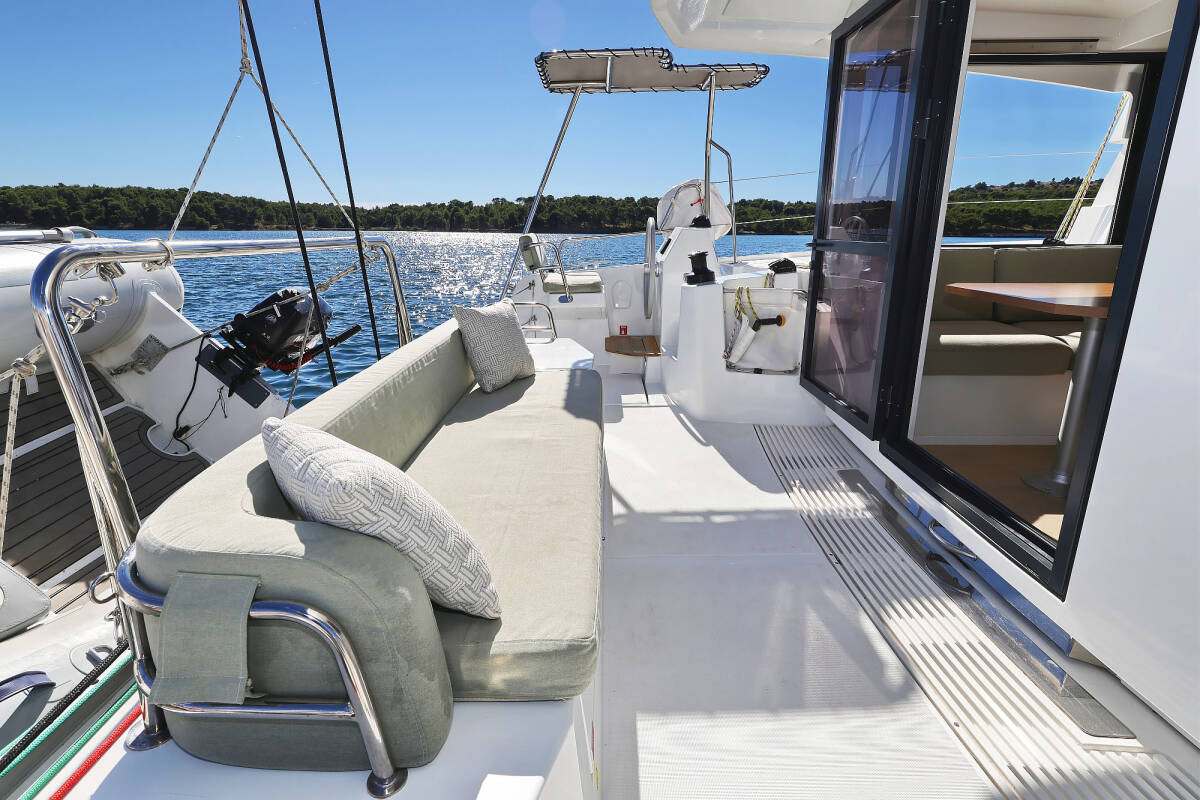 The Bali Catsmart „Arpina“ is equipped with a mainsail and a genoa as well as a Bimini top, Autopilot, GPS chart plotter - cockpit.