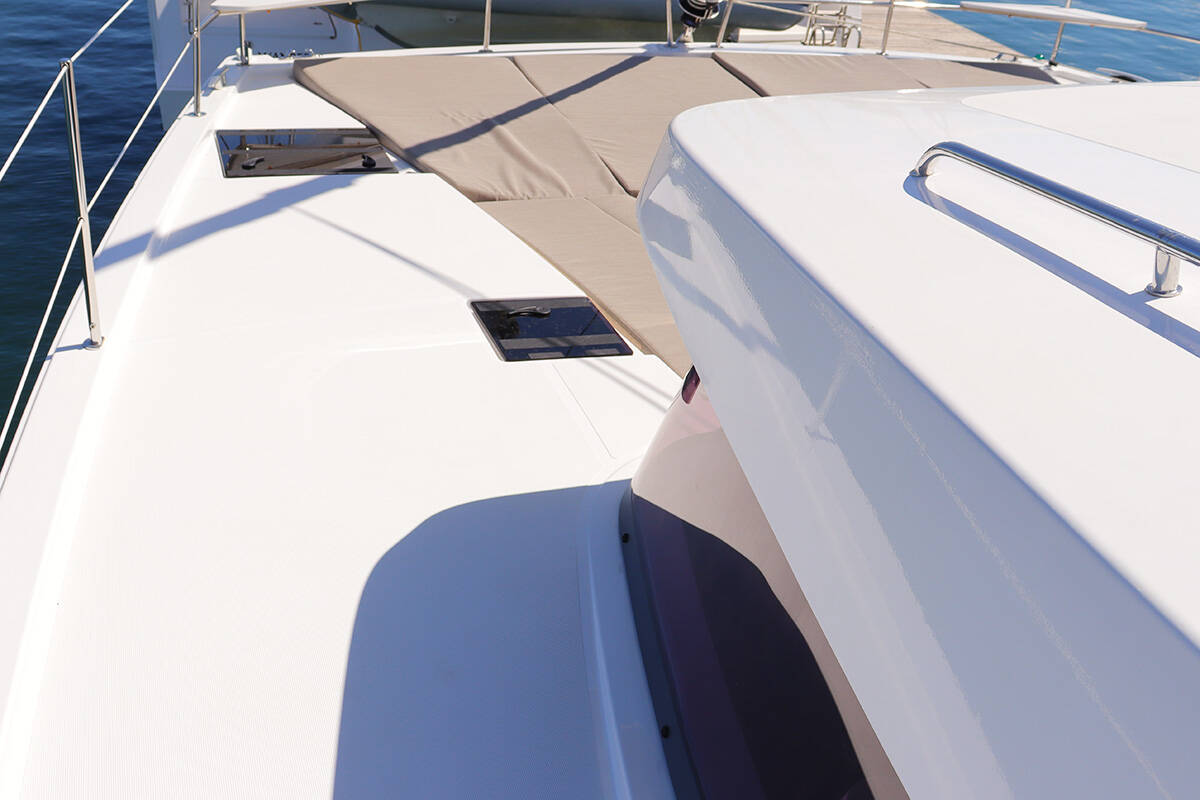 The Bali Catsmart „Tehani_X“ is equipped with a mainsail and a genoa as well as a Bimini top, Autopilot.