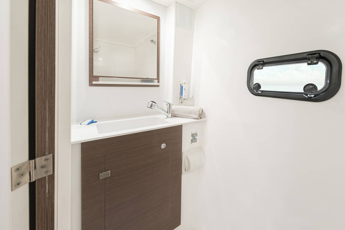 The Bali Catspace „Kvinton“ offers special comfort with the following equipment features: Generator, Air Conditioning, Freezer, Cockpit cushions, Bathing platform, Inverter, Electric toilet, Dishwasher, Solar panels.