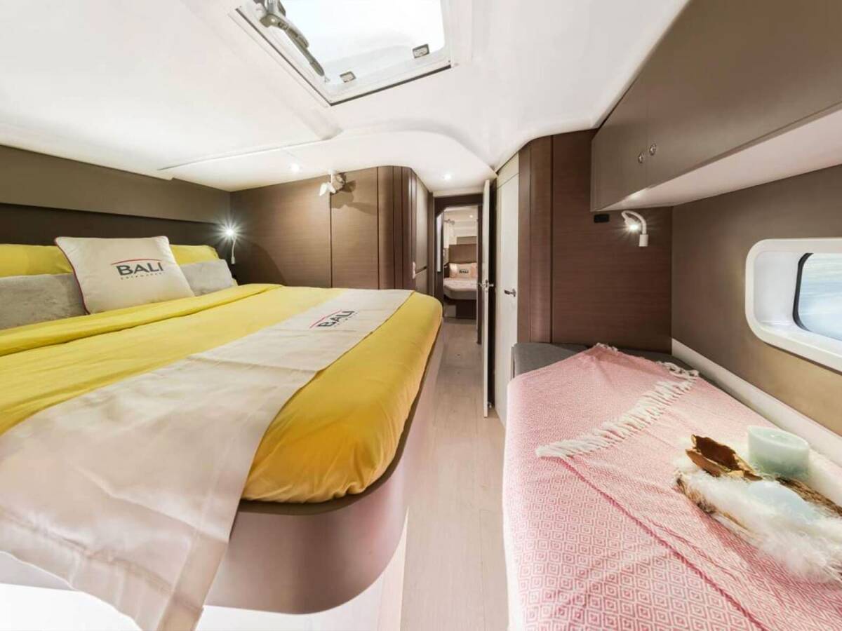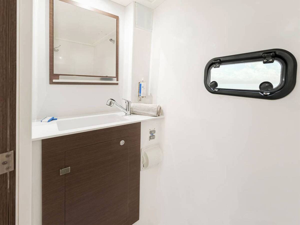 The Bali Catspace „Orca“ offers special comfort with the following equipment features: Generator, Air Conditioning, Cockpit cushions, Bathing platform, Inverter, Electric toilet.