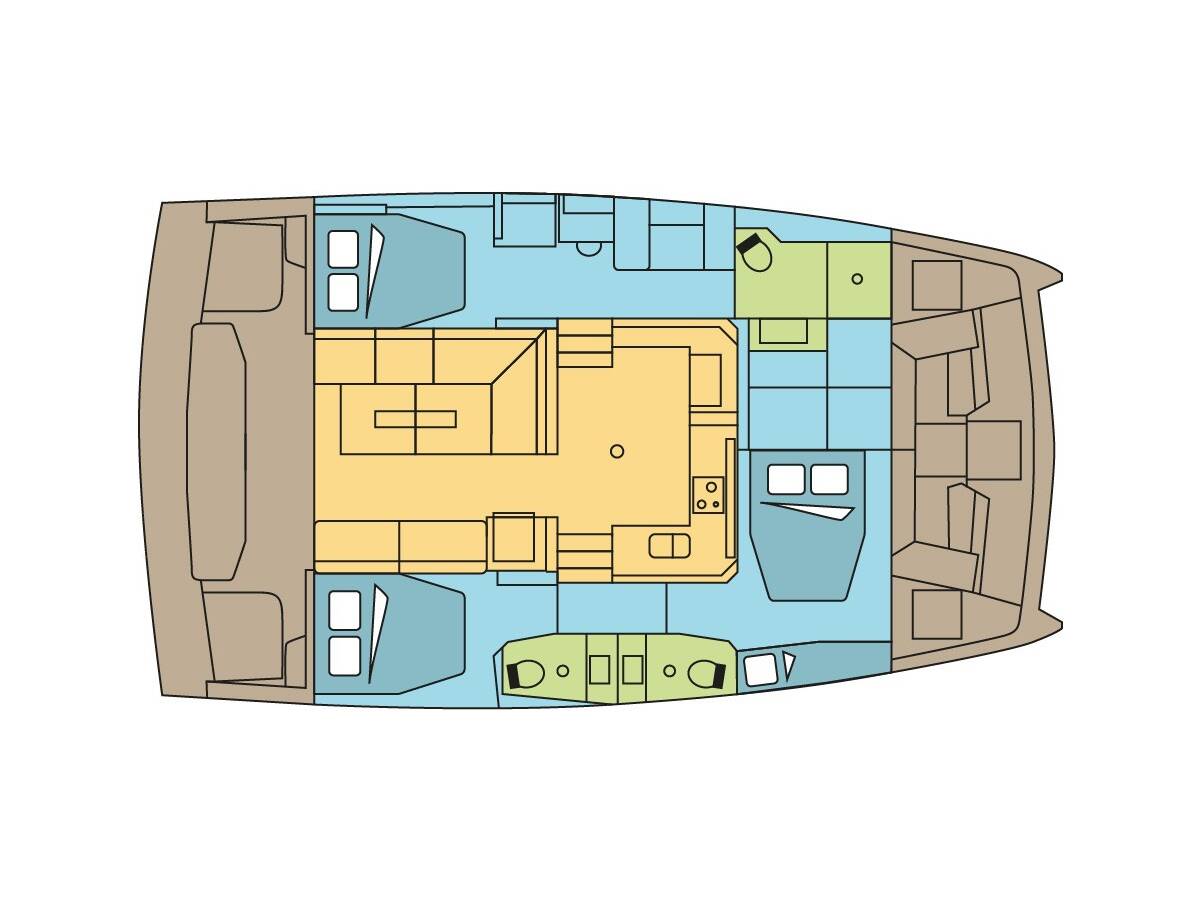 The Bali Catspace OW „NANCYE IV“ offers special comfort with the following equipment features: Generator, Air Conditioning, Freezer, Cockpit cushions, Inverter, Electric toilet, Solar panels.