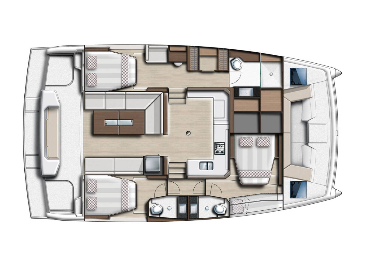 The Bali Catspace OW „Playtime - OW“ offers special comfort with the following equipment features: Air Conditioning, Freezer, Cockpit cushions, Bathing platform, Inverter, Solar panels.