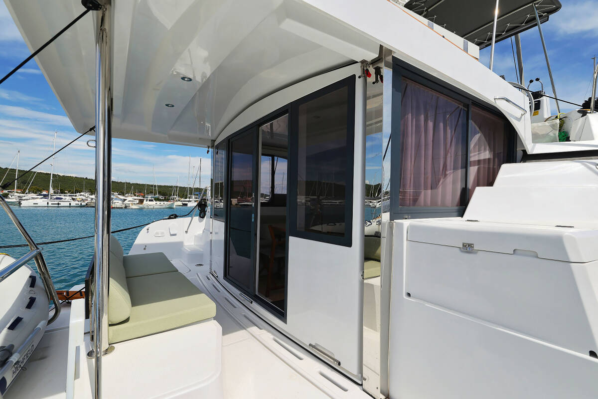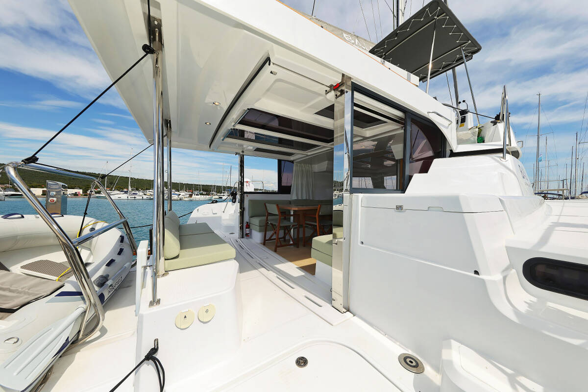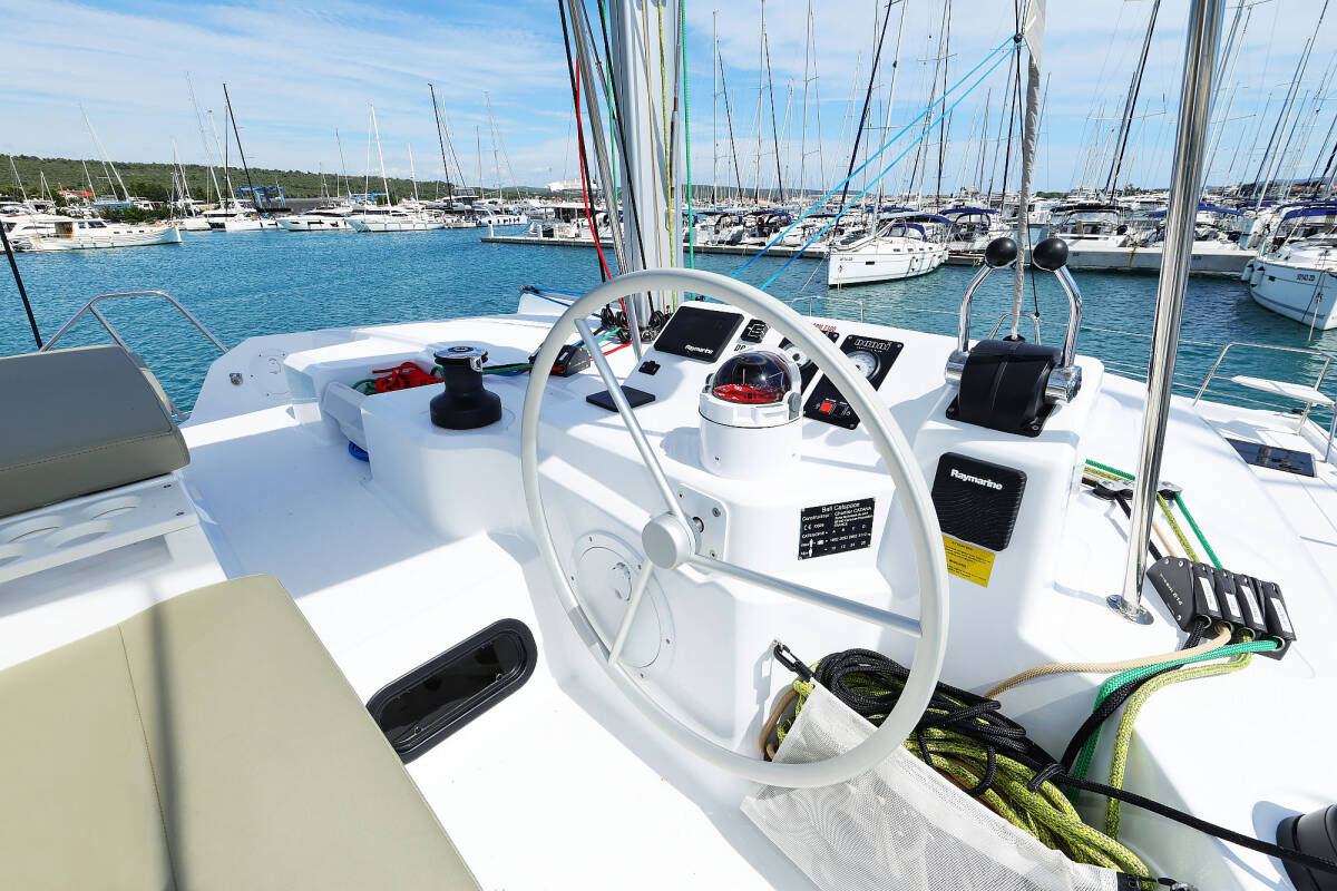 The Bali Catspace OW „Playtime - OW“ is equipped with a mainsail and a genoa as well as a Bimini top, Autopilot, Heating, GPS chart plotter - cockpit.