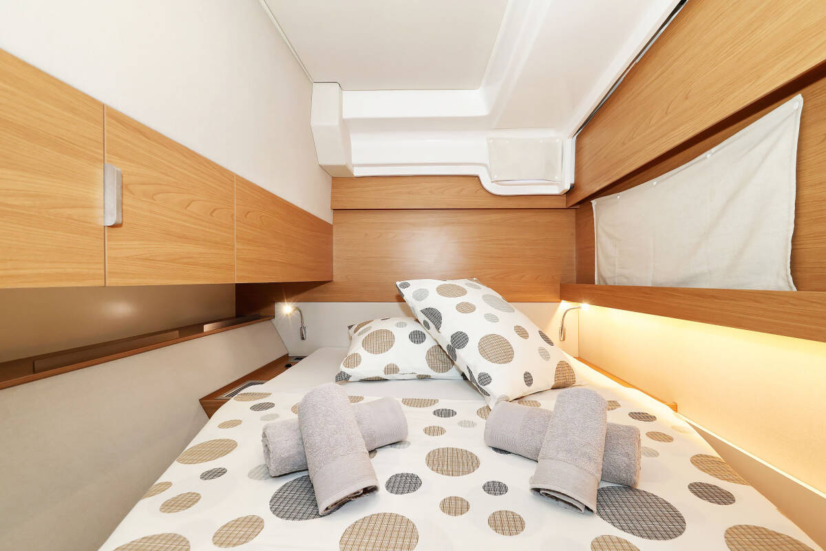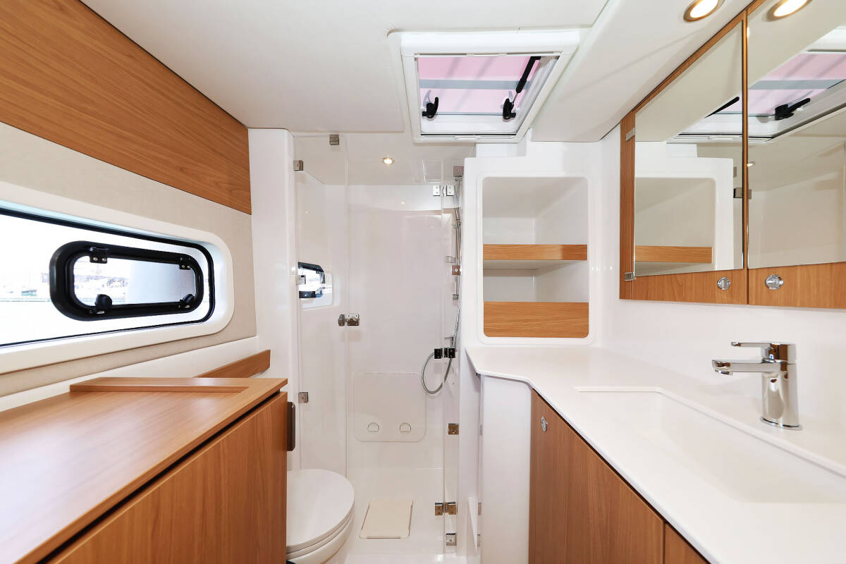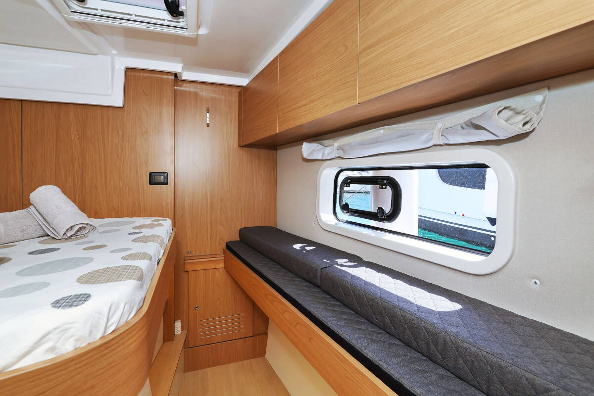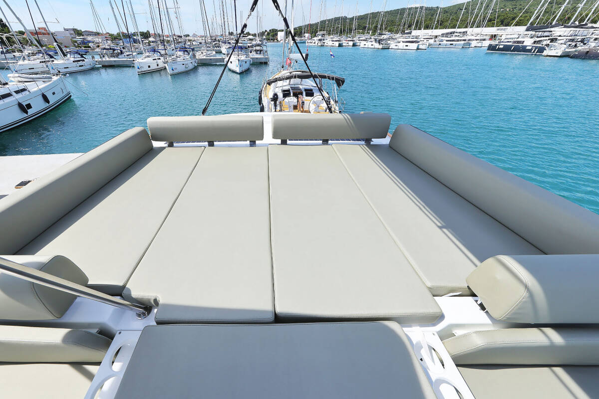 The Bali Catspace OW „Playtime - OW“ is equipped with a mainsail and a genoa as well as a Bimini top, Autopilot, Heating, GPS chart plotter - cockpit.