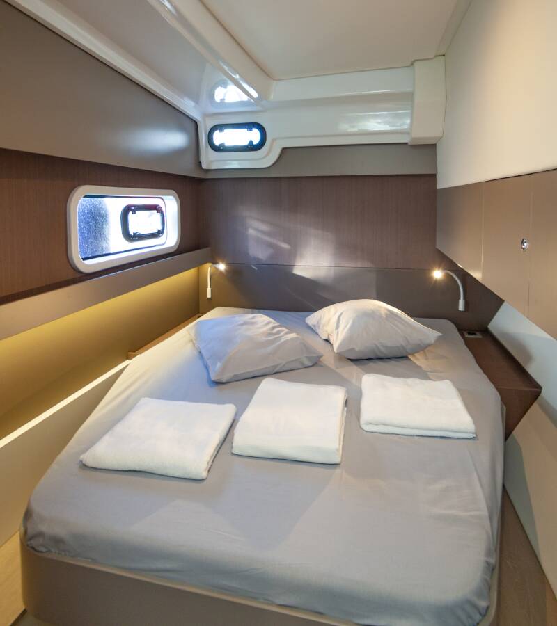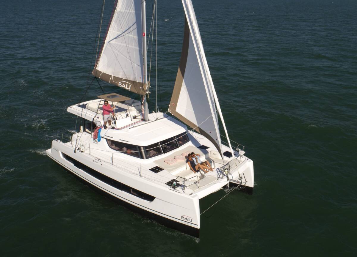 The Bali Catspace „Sail Solaris“ is equipped with a mainsail and a genoa as well as a Autopilot.