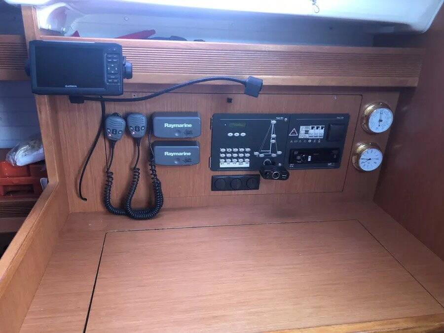 The Bavaria 43 Cruiser „Aqua Dream“ is equipped with a mainsail and a genoa as well as a Bimini top, Autopilot, Sprayhood, GPS chart plotter - cockpit.