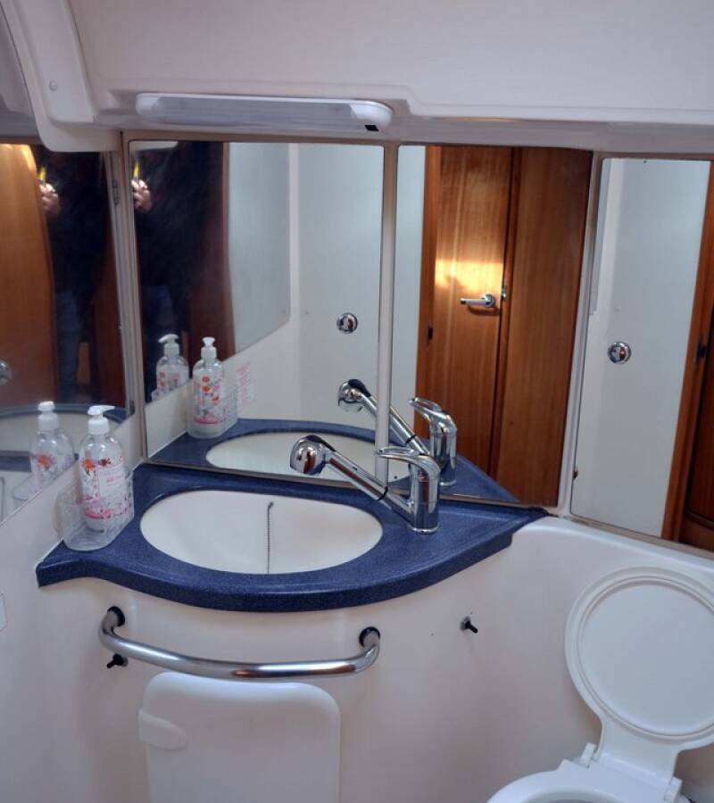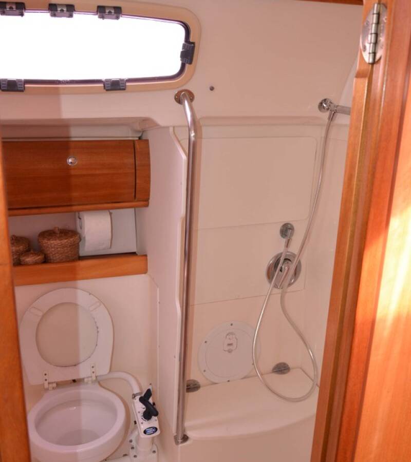 The Bavaria 46 Cruiser „Chronos“ is equipped with a mainsail and a genoa as well as a Bimini top, Autopilot, Sprayhood.