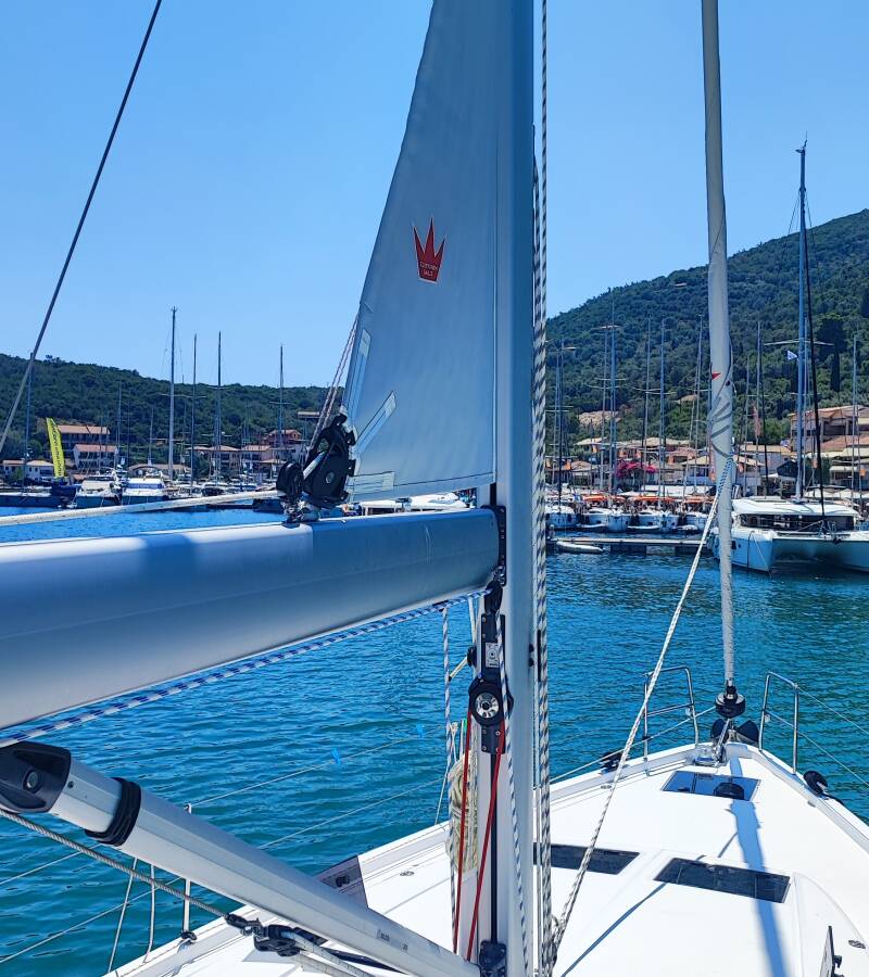 The Bavaria C46 „461 Ocean Boulevard“ is equipped with a mainsail and a genoa as well as a Bimini top, Autopilot, Sonar.