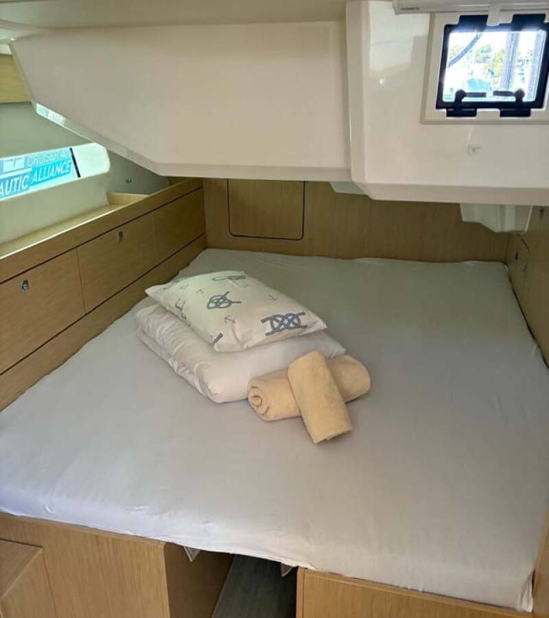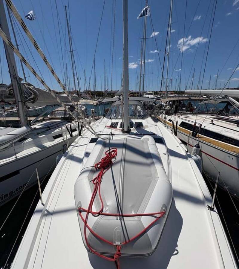 The Bavaria C46 „Ara“ offers special comfort with the following equipment features: Bow thruster, Cockpit cushions, Inverter, Solar panels, Cockpit grill.