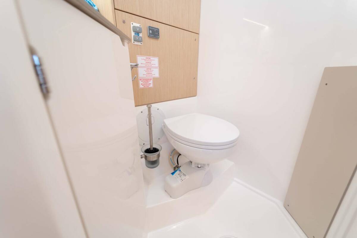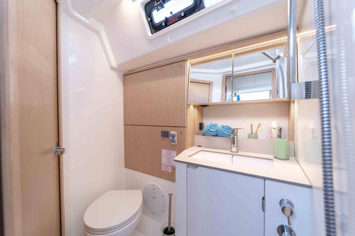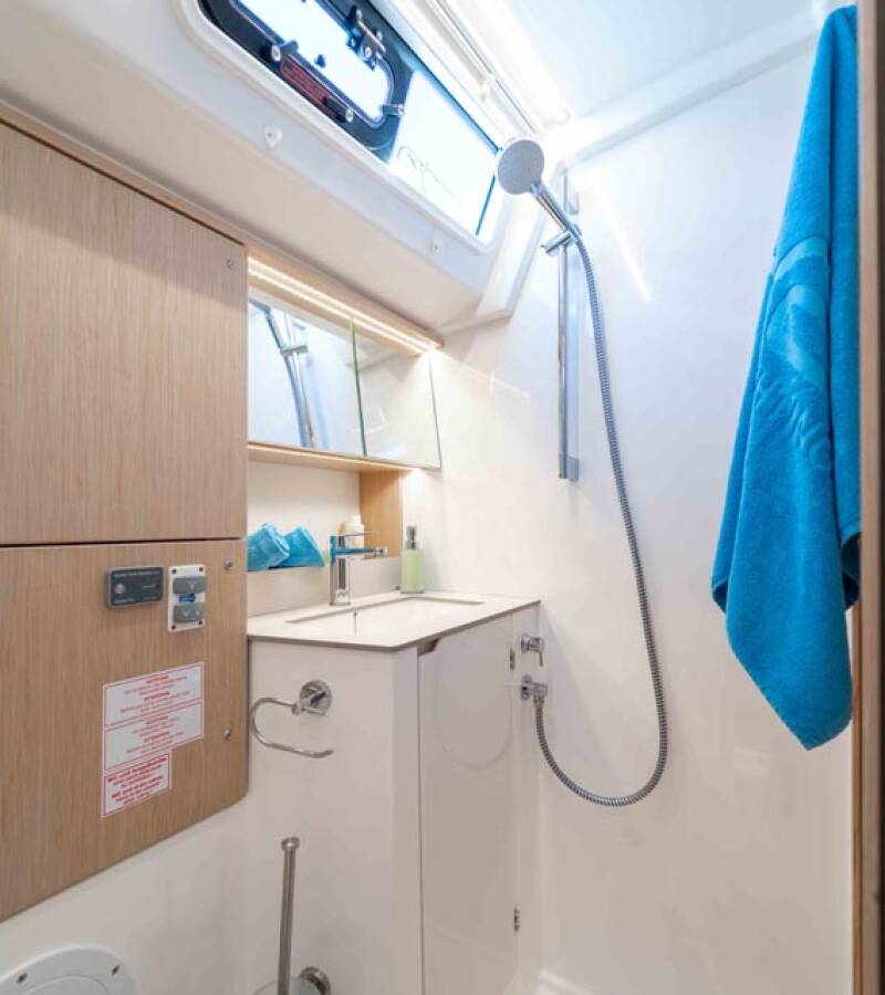 The Bavaria C46 „Sofia“ offers special comfort with the following equipment features: Bow thruster, Cockpit cushions, Inverter, Electric toilet, Solar panels.