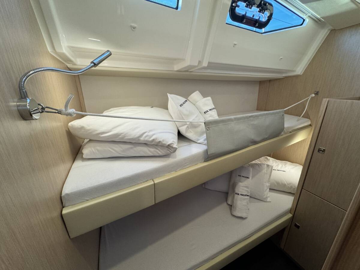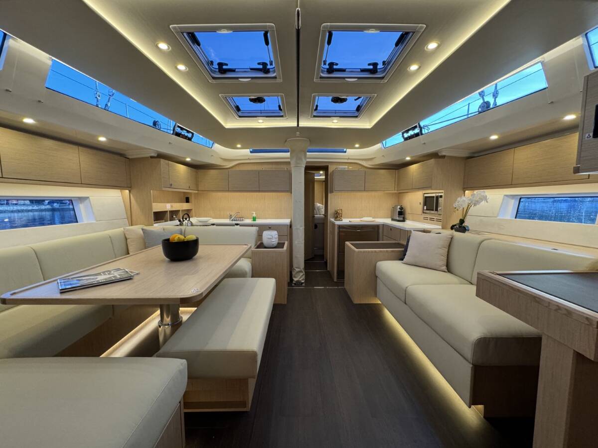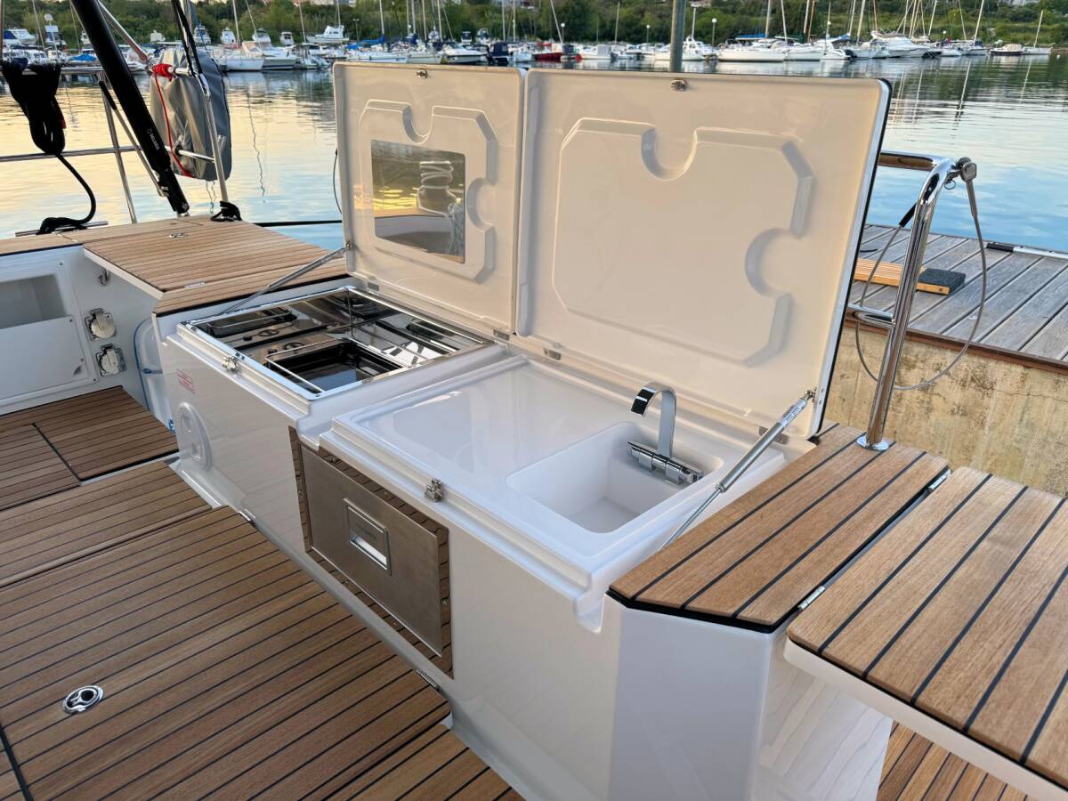 The Bavaria C57 Style „Mina“ offers special comfort with the following equipment features: Bow thruster, Generator, Air Conditioning, Cockpit cushions, Bathing platform, Solar panels, Cockpit grill.