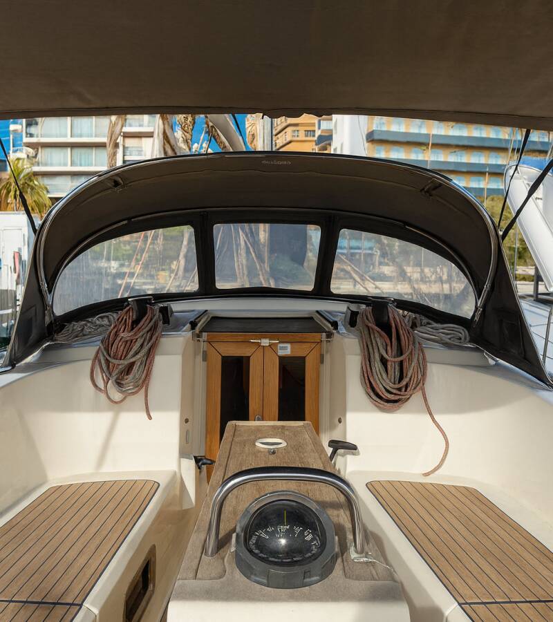 The Bavaria Cruiser 41 „Bintan“ is equipped with a mainsail and a genoa as well as a Autopilot, Sprayhood, Heating.