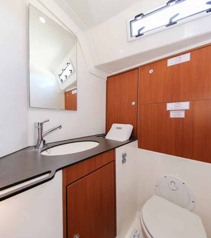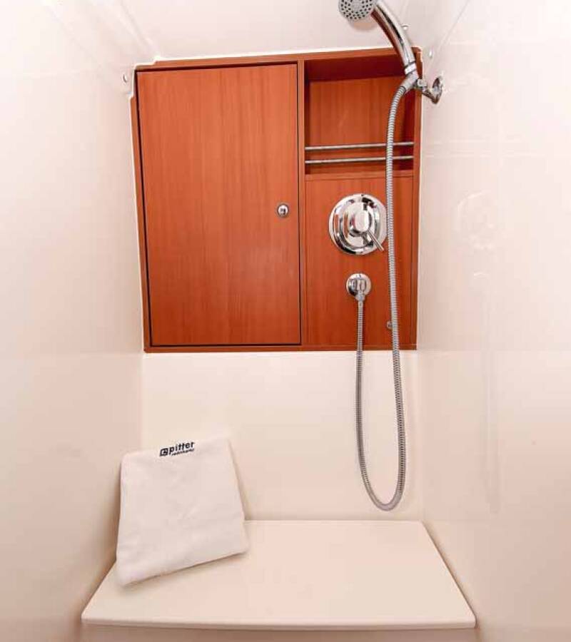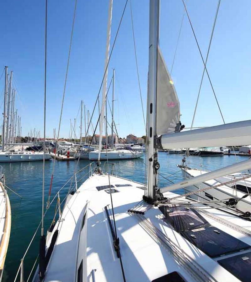 The Bavaria Cruiser 45 „Wolke 7“ offers special comfort with the following equipment features: Bow thruster, Cockpit cushions, Bathing platform, Inverter, Solar panels.