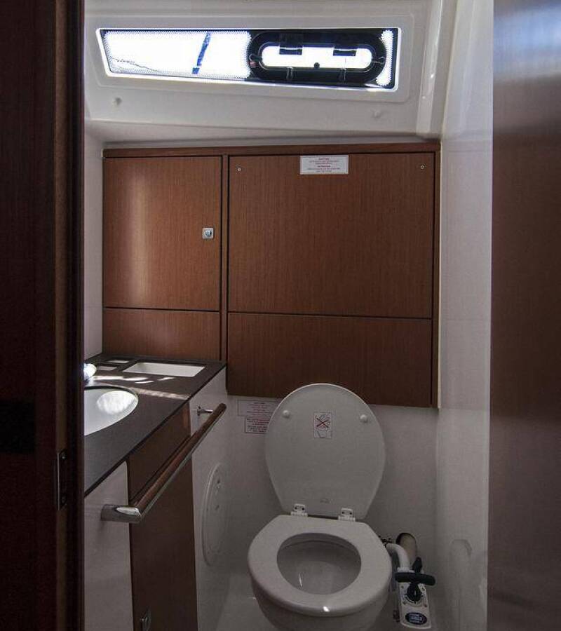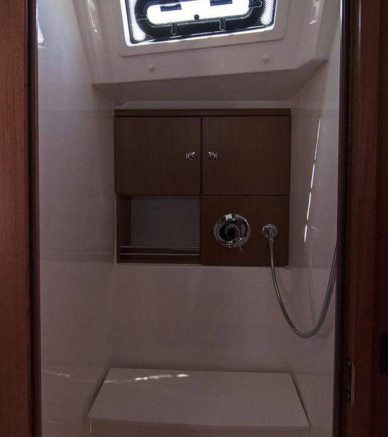 The Bavaria Cruiser 46 „Adria Myriam“ offers special comfort with the following equipment features: Bow thruster, Bathing platform, Inverter.