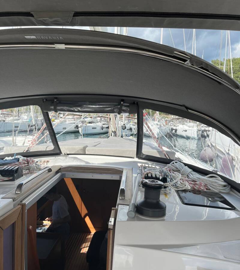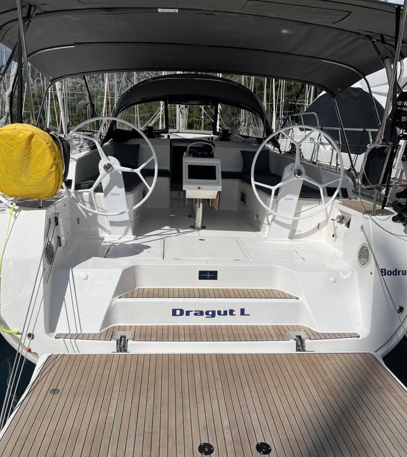 The Bavaria Cruiser 46 „Dragut L“ is equipped with a mainsail and a genoa as well as a Bimini top, Autopilot, Sprayhood, Teak cockpit.