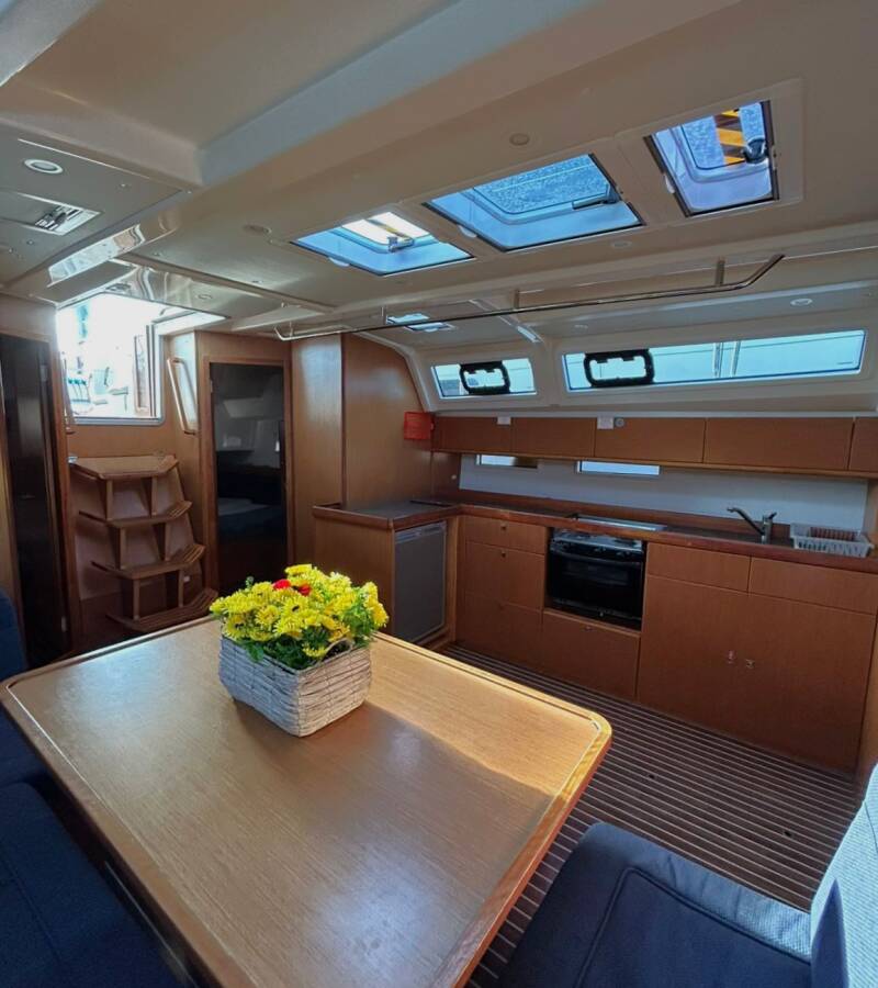 The Bavaria Cruiser 46 „Leonidas II“ offers special comfort with the following equipment features: Bow thruster, Cockpit cushions, Inverter.