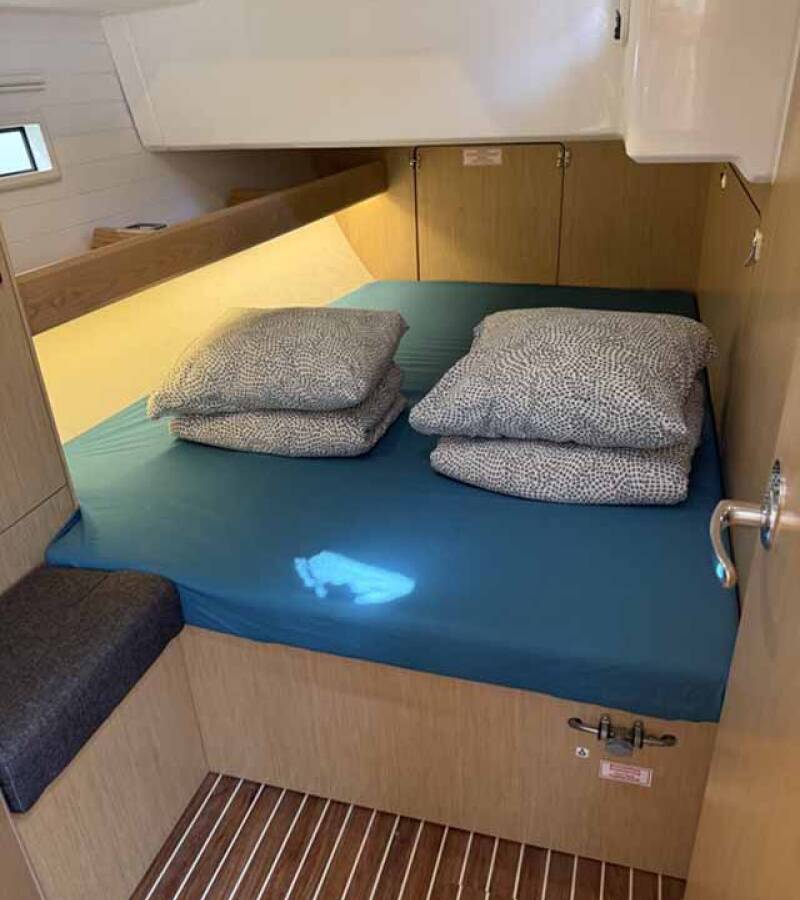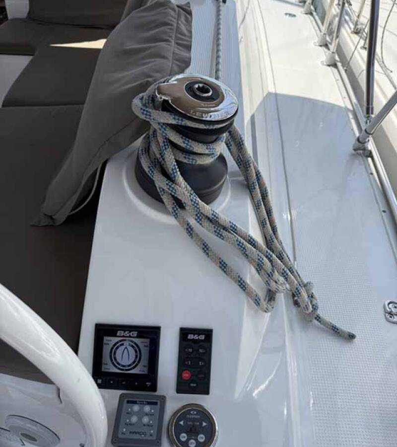 The Bavaria Cruiser 46 Style „Casandra“ offers special comfort with the following equipment features: Bow thruster, Cockpit cushions, Inverter, Electric toilet.