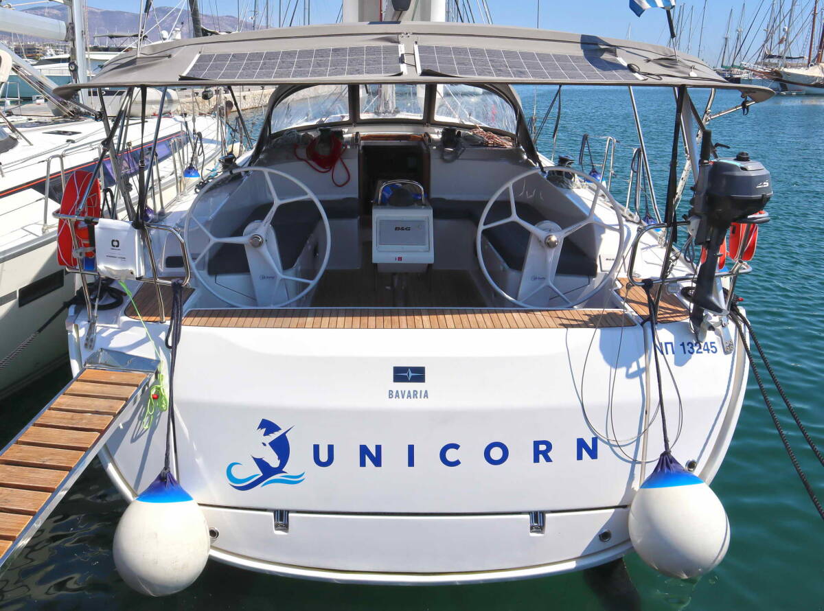 The Bavaria Cruiser 46 „Unicorn“ offers special comfort with the following equipment features: Bow thruster, Cockpit cushions, Solar panels.