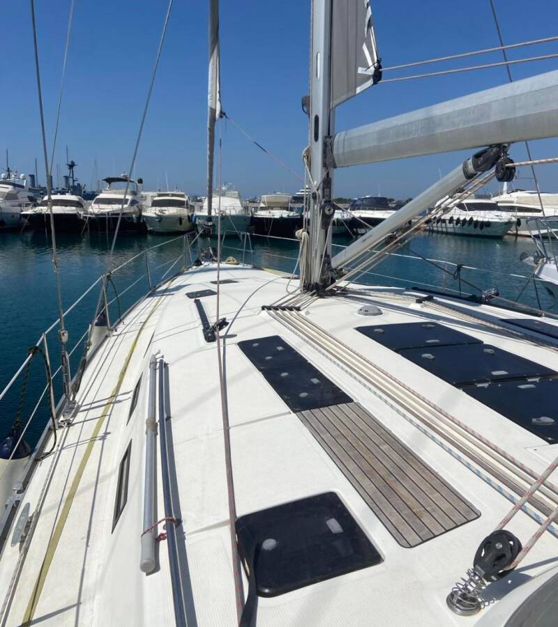 The Bavaria Cruiser 50 „Marianthi M“ is equipped with a mainsail and a genoa as well as a Bimini top, Autopilot, Sprayhood.