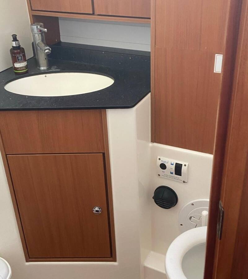 The Bavaria Cruiser 50 „Marianthi M“ offers special comfort with the following equipment features: Bow thruster, Air Conditioning, Cockpit cushions, Inverter, Electric toilet.